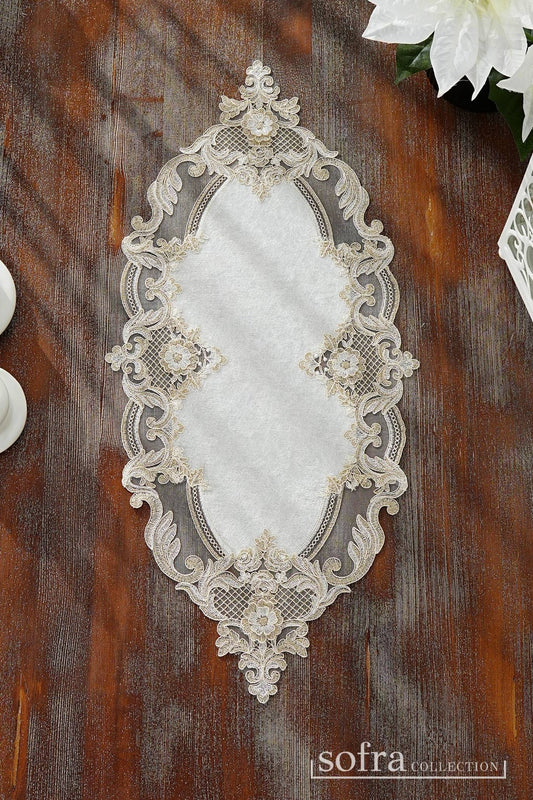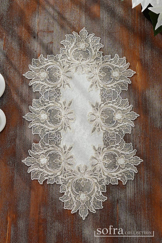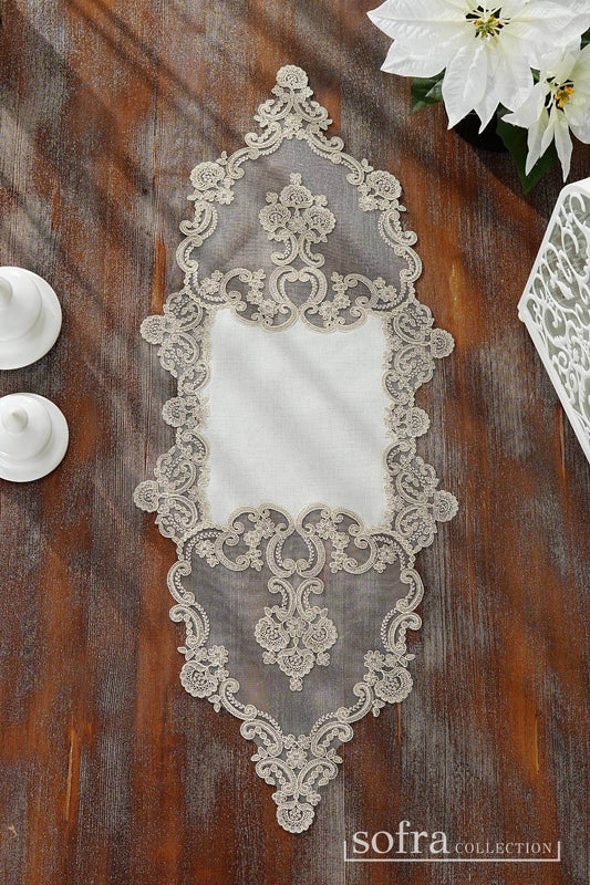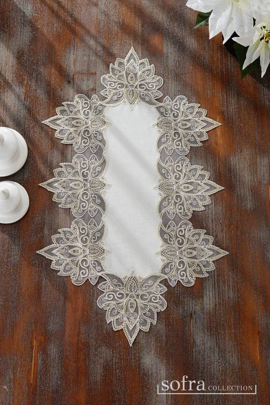 طقم مفارش ٣ قطع مزين بدانتيل بلاتينى – موديل سالكم - قماش كتان فاخر مقاوم للبقع