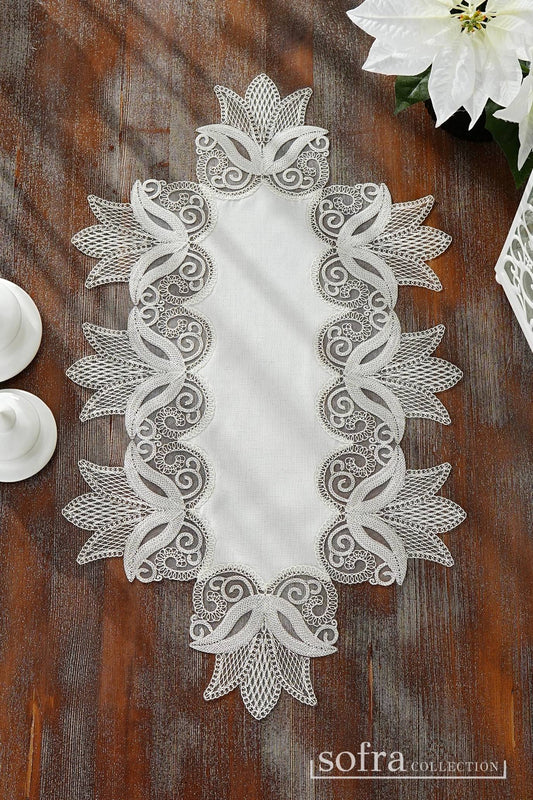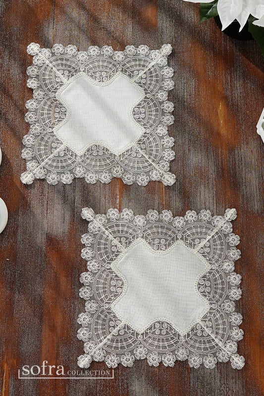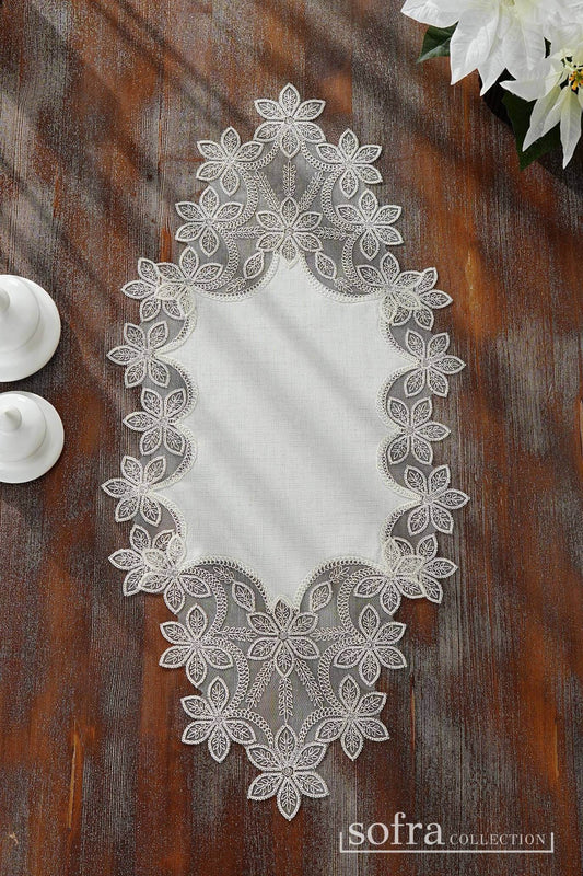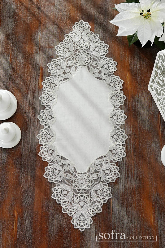 طقم مفارش ٣ قطع مزين بدانتيل اوف وايت – موديل سيفدا - قماش كتان فاخر مقاوم للبقع