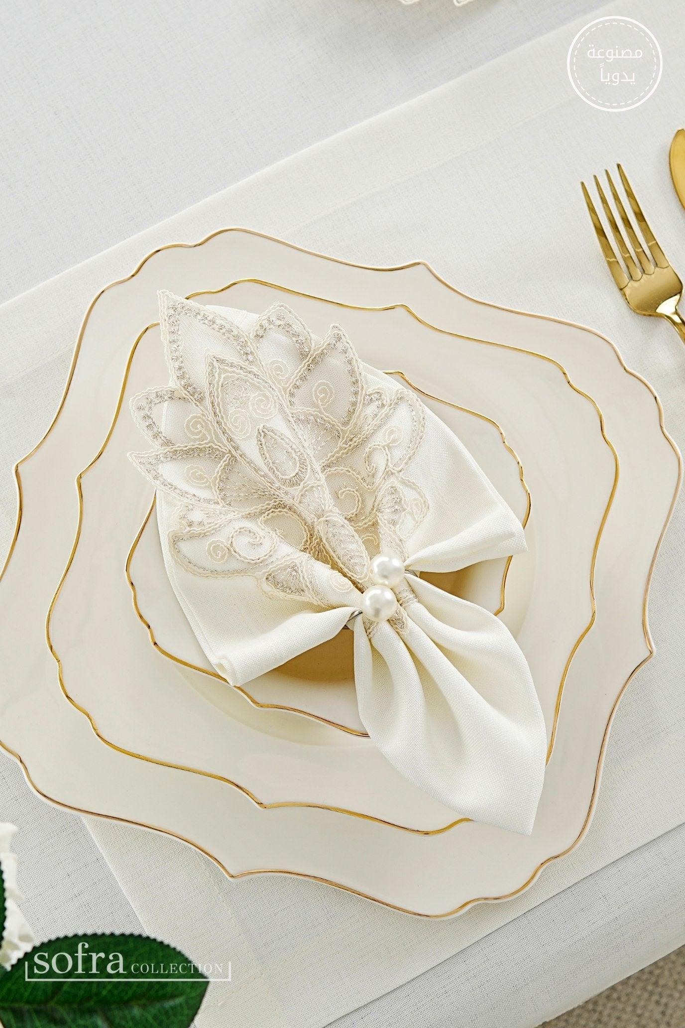 طقم مفارش سفرة فاخر يتكون من ٣٨ قطعة كاملة يكفى ١٢ شخص