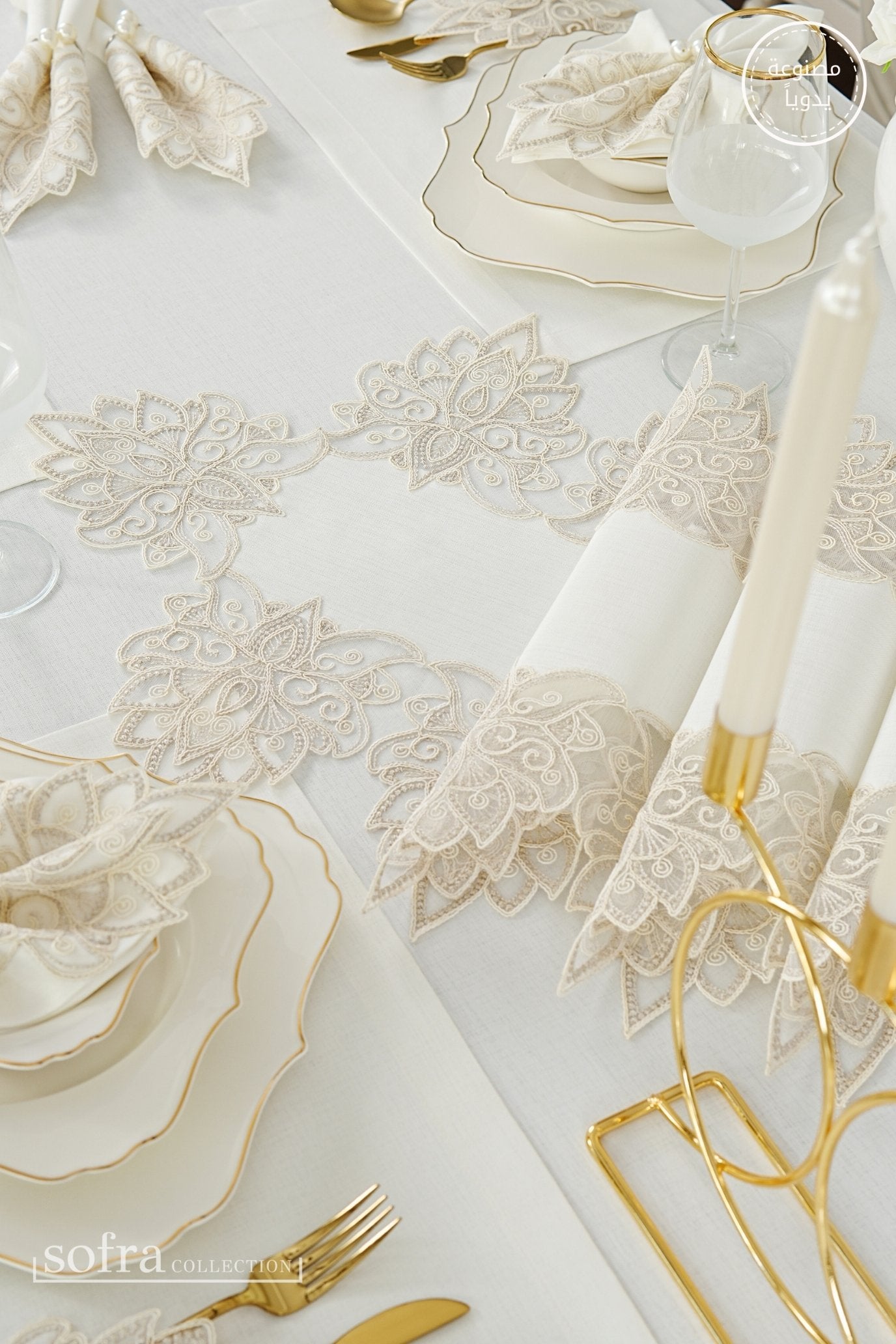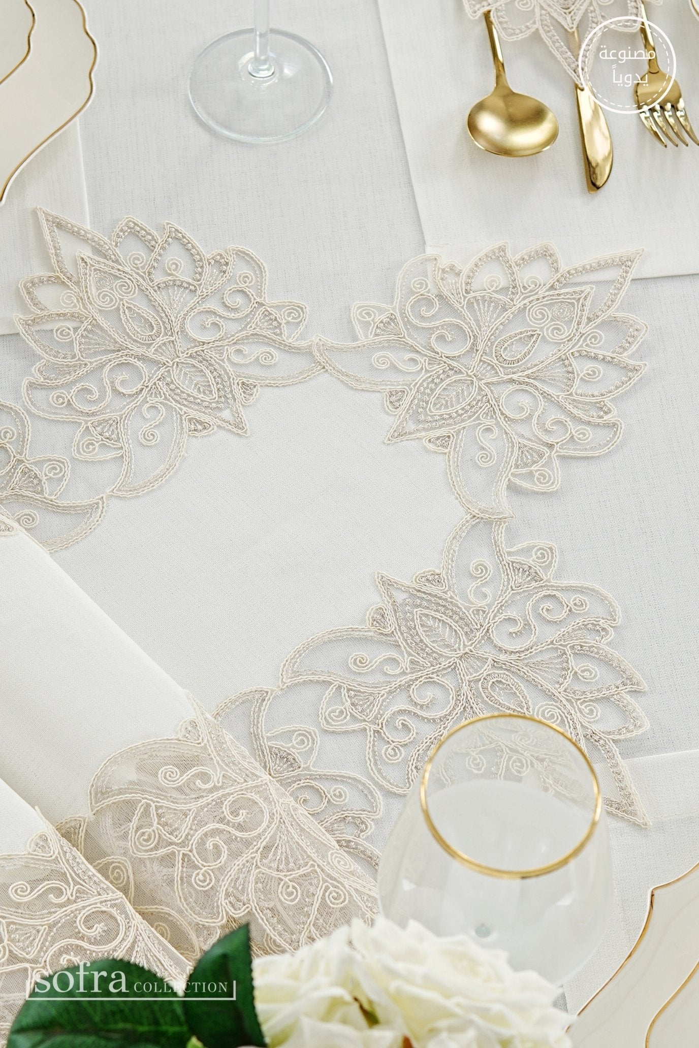 • رانر مزين بالدانتيل (قطعة واحدة) – يصمم ليتناسب مع مقاس الطاولة
