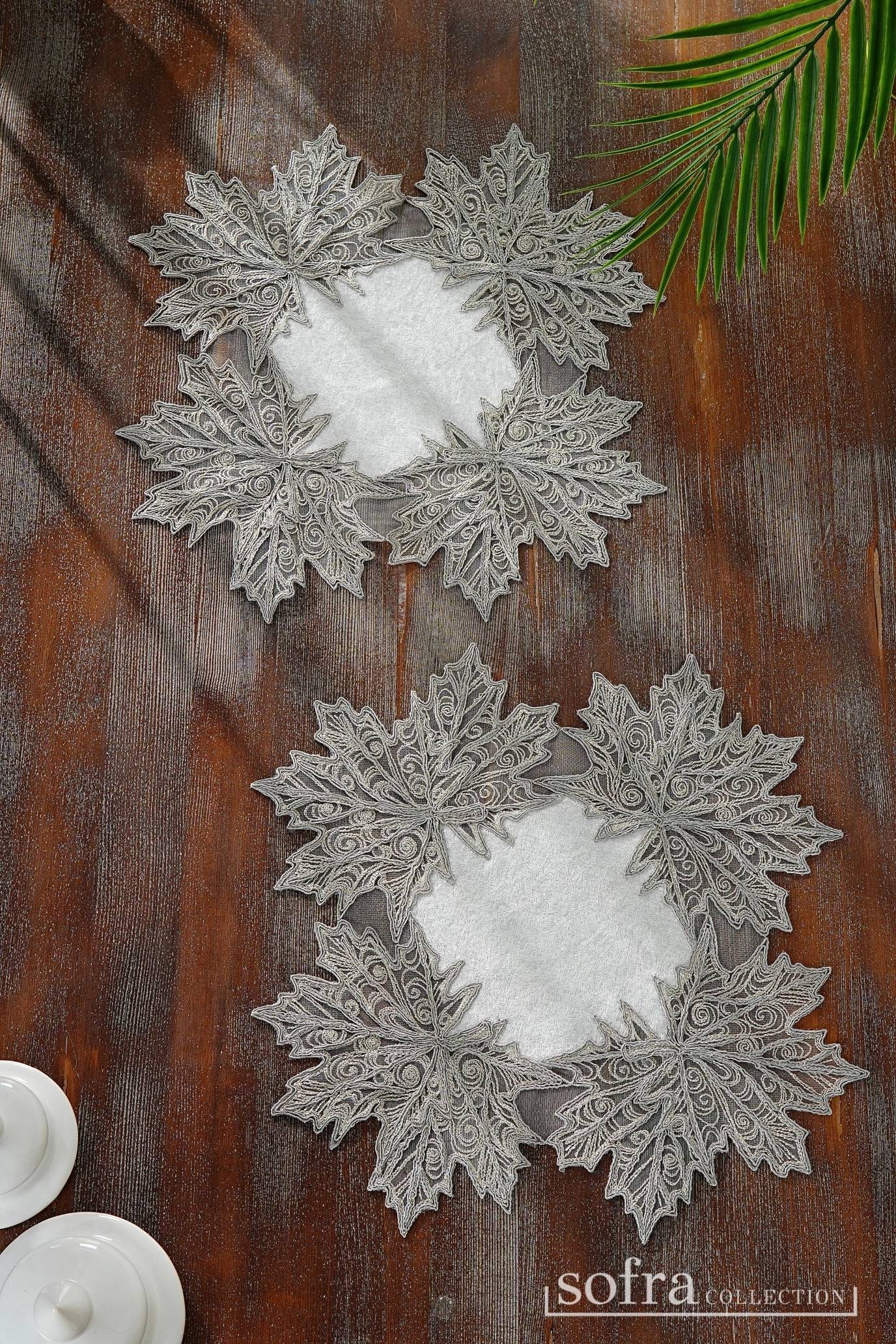 مفرشان للطاولات الجانبية : قطعتان – مقاس ٤٤ × ٤٤ سم