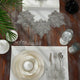 طقم مفارش سفرة مزين بدانتيل رمادى وفضى - موديل ورق الغار – بدون مناديل - ١٣ قطعة – ١٢ شخص - قماش كتان مقاوم للبقع