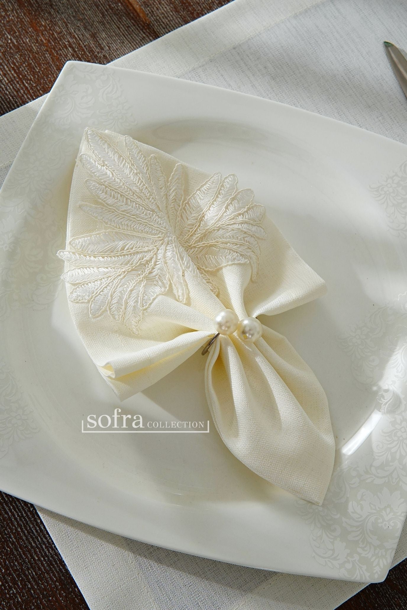 طقم مفارش سفرة مزين بدانتيل اوف وايت - موديل ديدم – شامل المناديل - ٣٧ قطعة – ١٢ شخص - قماش كتان مقاوم للبقع