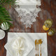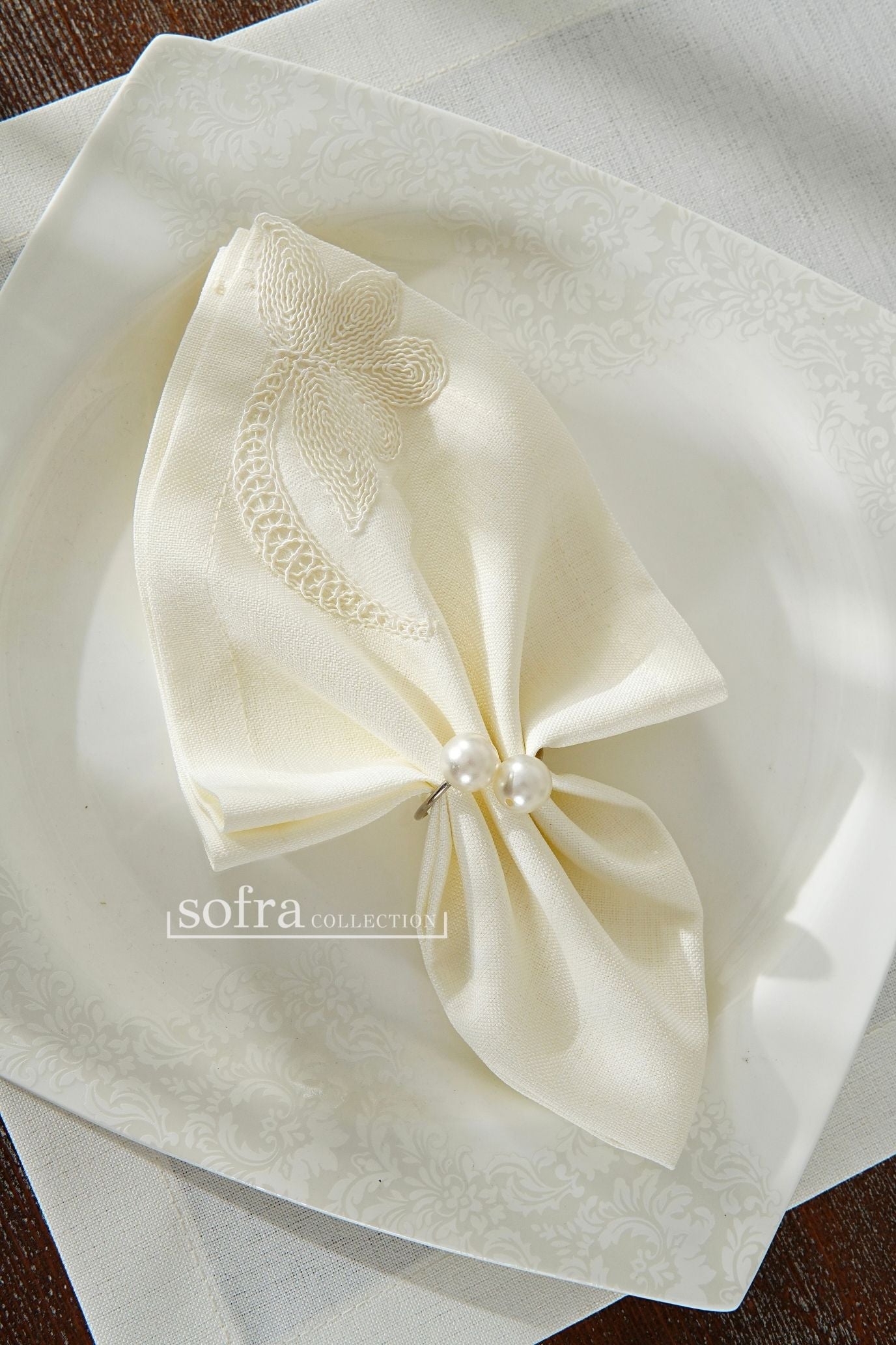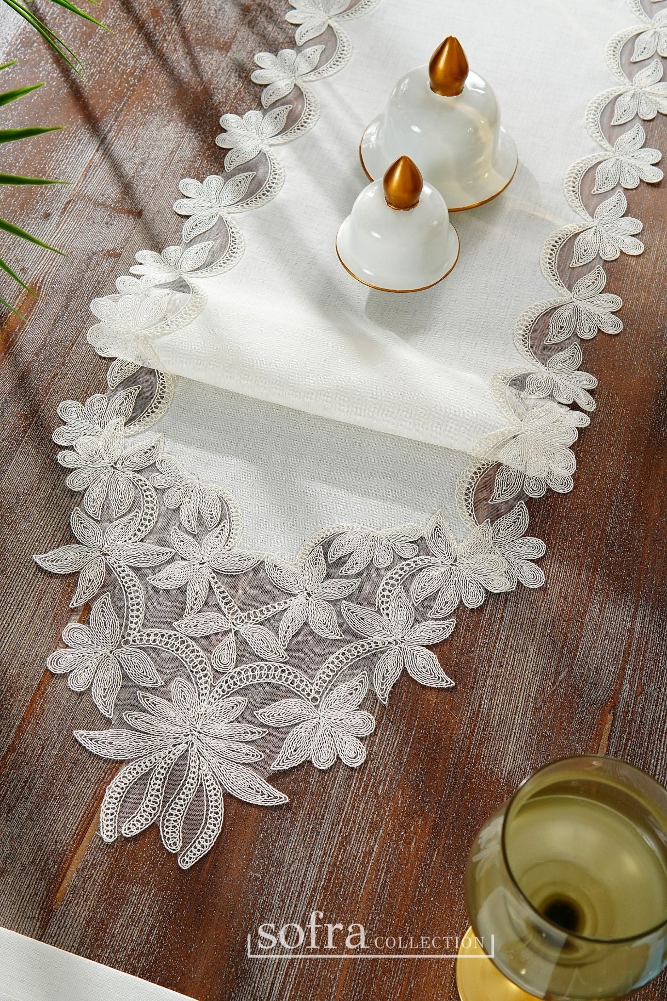 طقم مفارش سفرة مزين بدانتيل اوف وايت - موديل دينا – شامل المناديل - ٣٧ قطعة – ١٢ شخص - قماش كتان مقاوم للبقع
