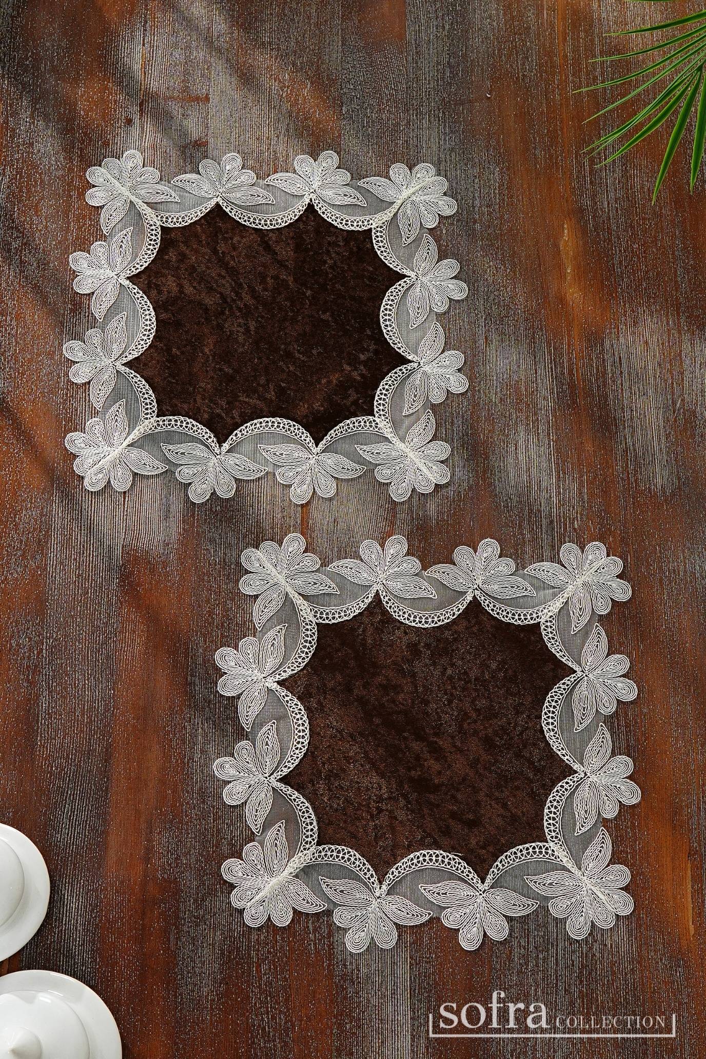 مفرشان للطاولات الجانبية : قطعتان – مقاس ٣٠ × ٣٠ سم