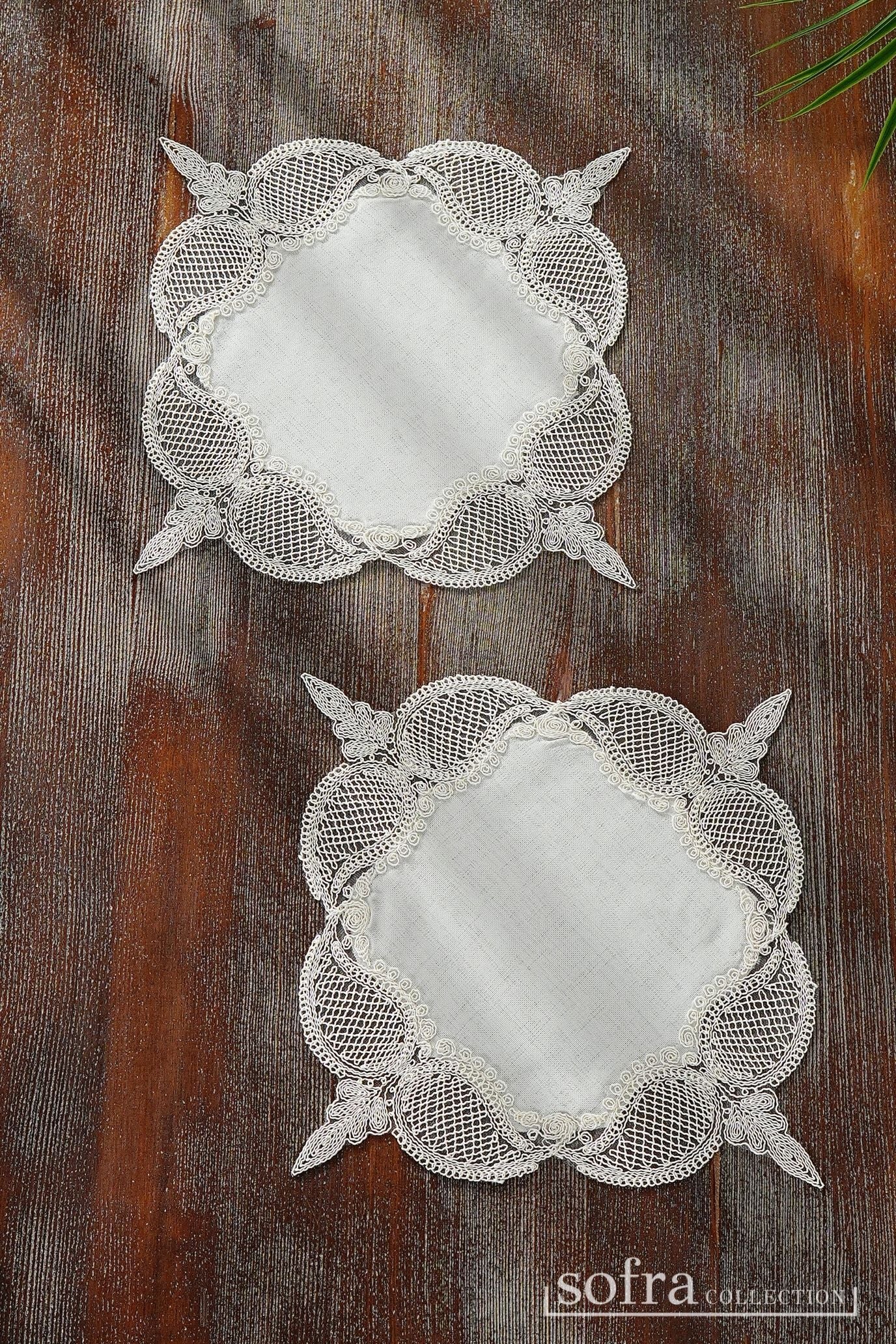 مفرشان للطاولات الجانبية : قطعتان – مقاس ٣٤ × ٣٤ سم