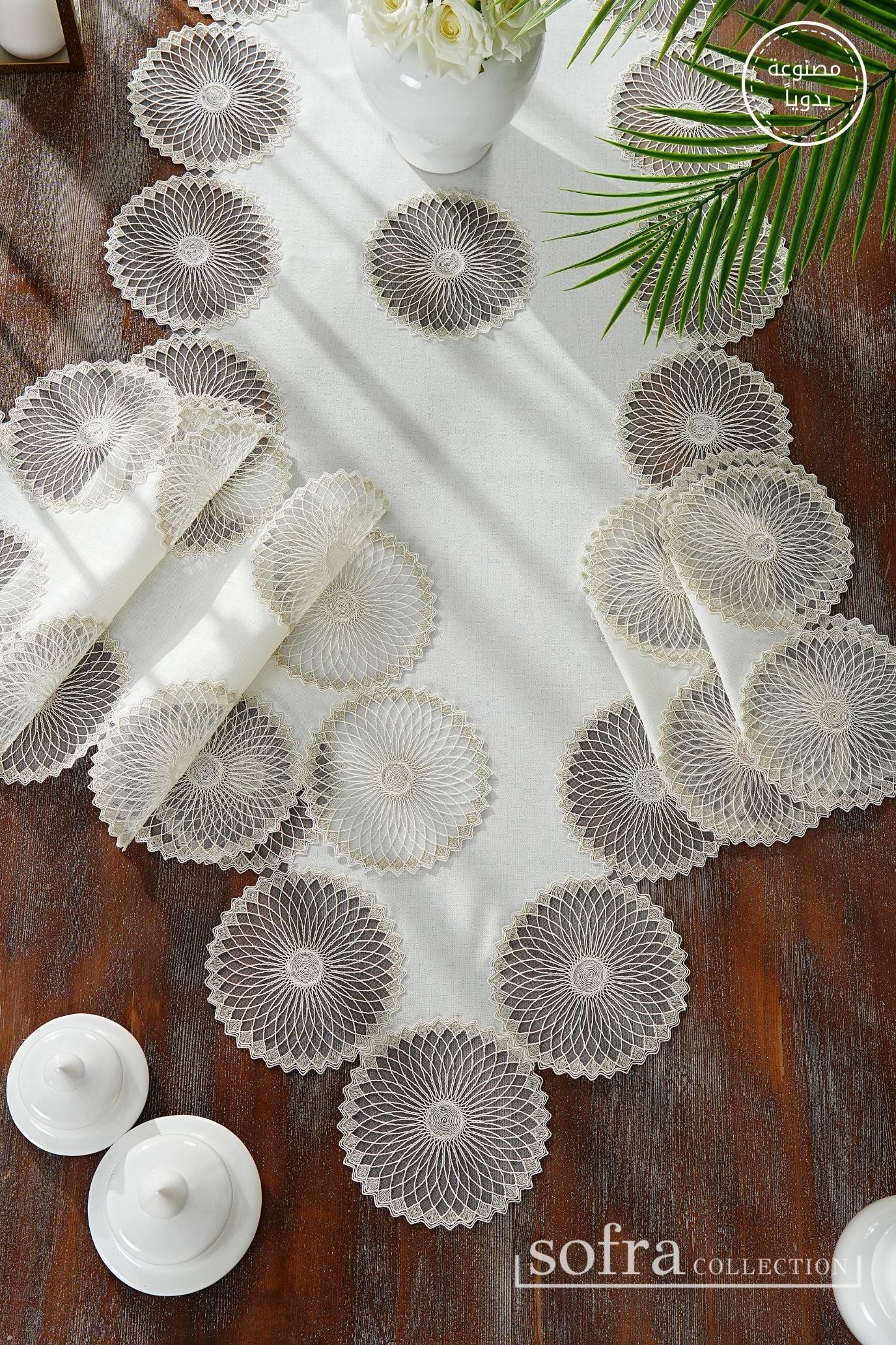 مفرشان للطاولات الجانبية : قطعتان – مقاس ٣٢ × ٣٢ سم