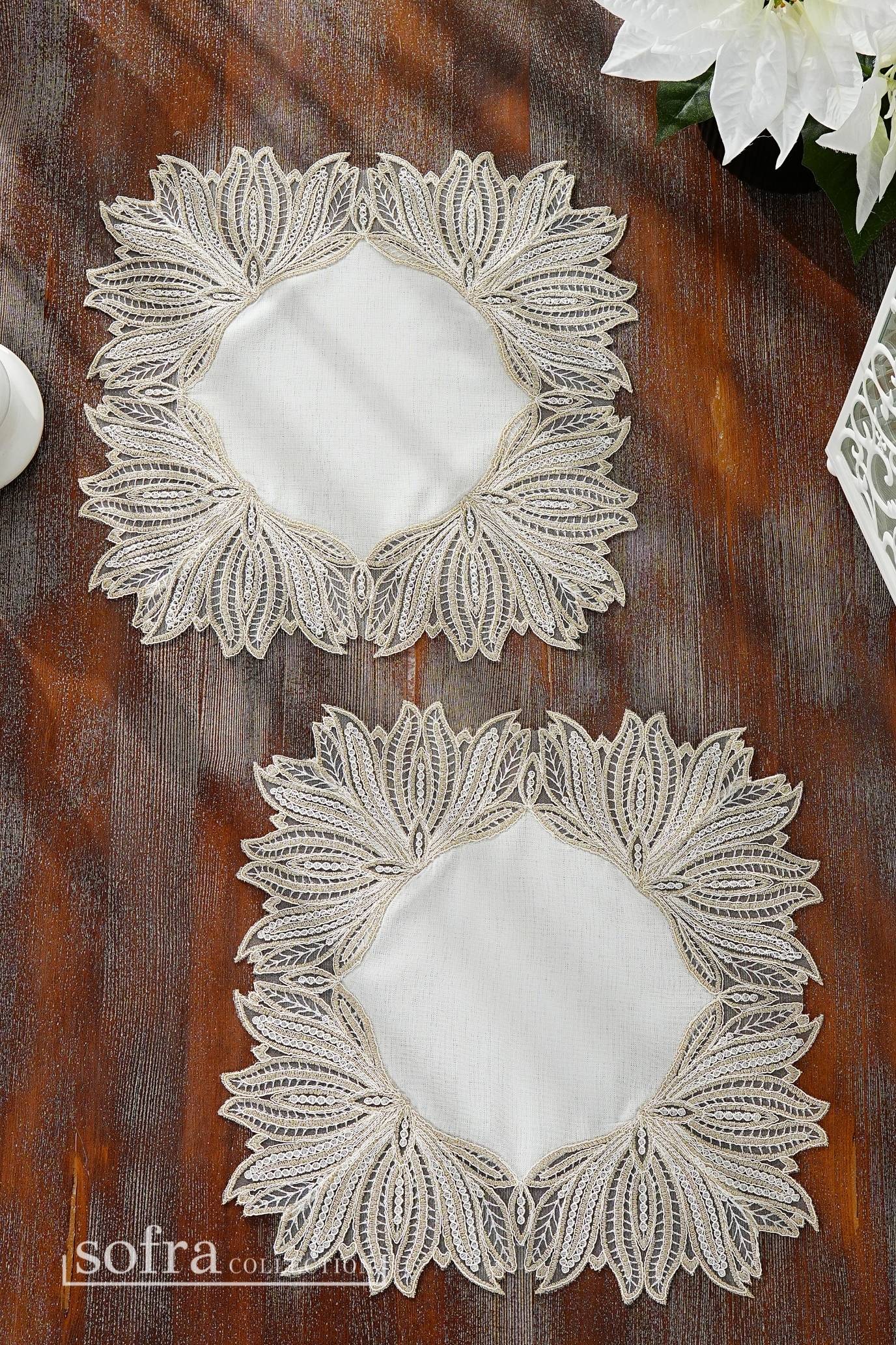 مفرشان للطاولات الجانبية: قطعتان – مقاس ٣٧ × ٣٧ سم