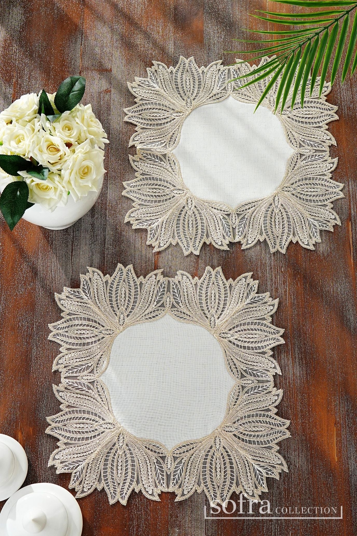 مفرشان للطاولات الجانبية : قطعتان – مقاس ٣٧ × ٣٧ سم