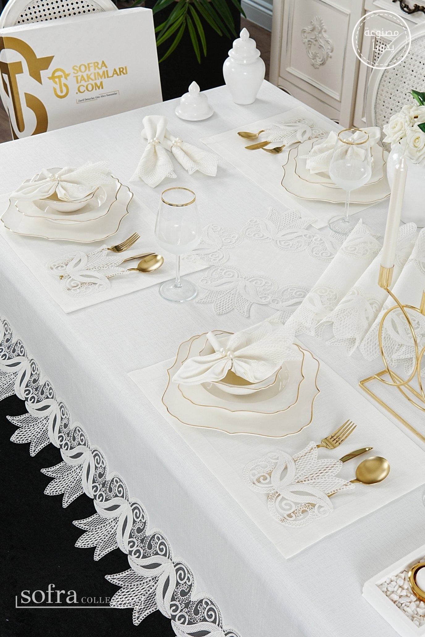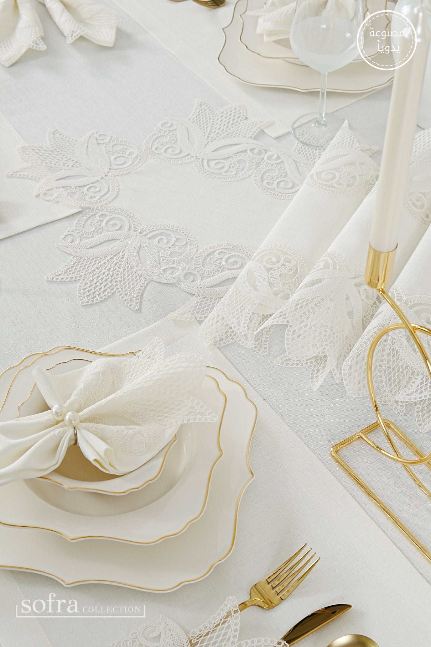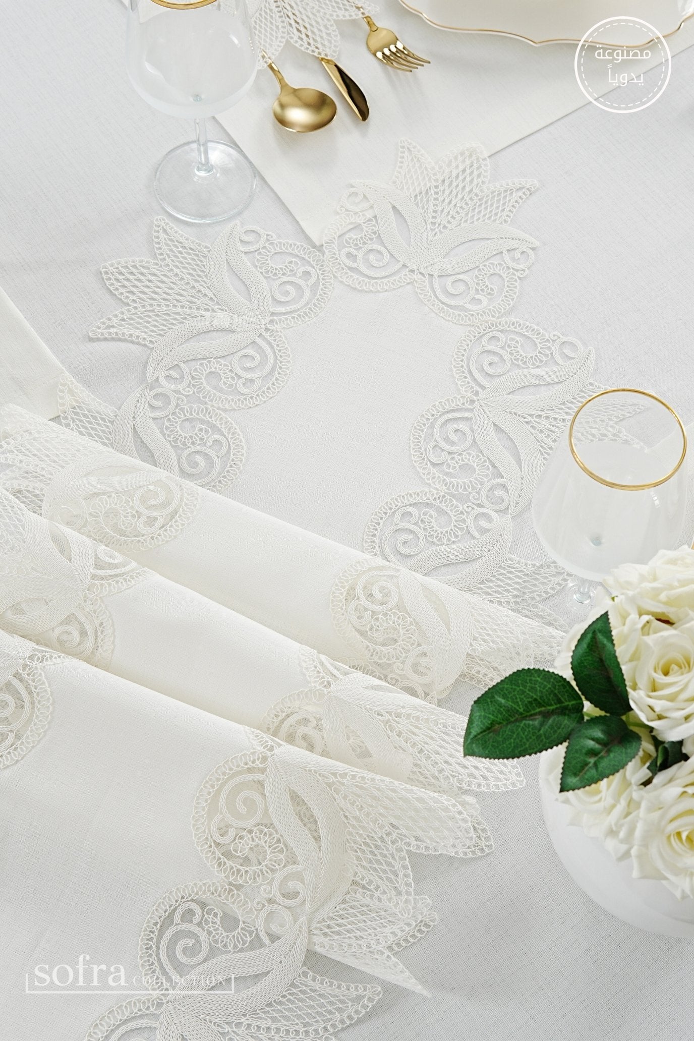 • رانر مزين بالدانتيل (قطعة واحدة) – يصمم ليتناسب مع مقاس الطاولة