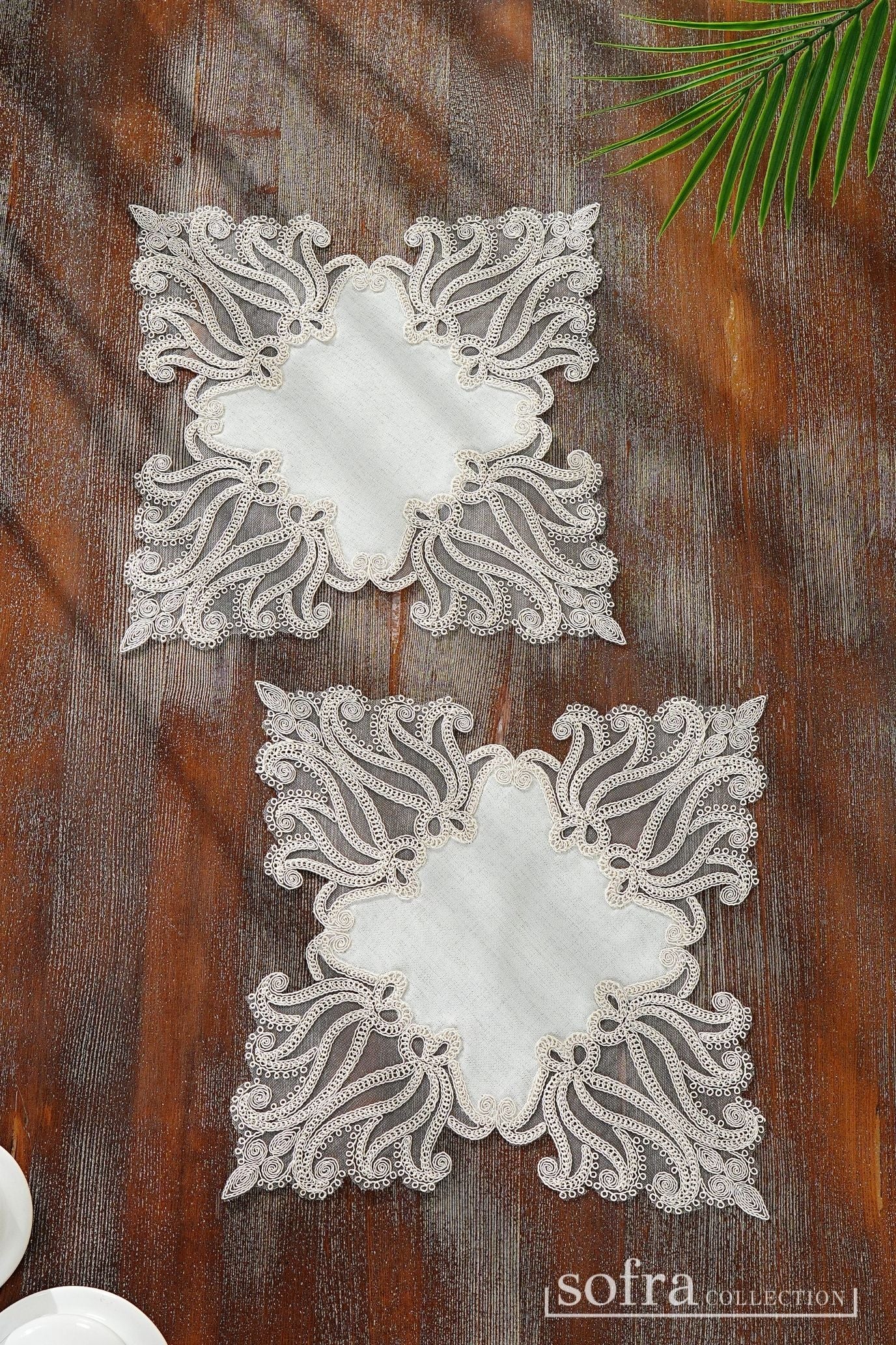 مفرشان للطاولات الجانبية : قطعتان – مقاس ٣٠ × ٣٠ سم