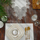 طقم مفارش سفرة مزين بدانتيل اوف وايت - موديل مانوليا – بدون مناديل - ١٣ قطعة – ١٢ شخص - قماش كتان مقاوم للبقع