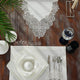 طقم مفارش سفرة مزين بدانتيل اوف وايت - موديل منى – بدون مناديل - ١٣ قطعة – ١٢ شخص - قماش كتان مقاوم للبقع