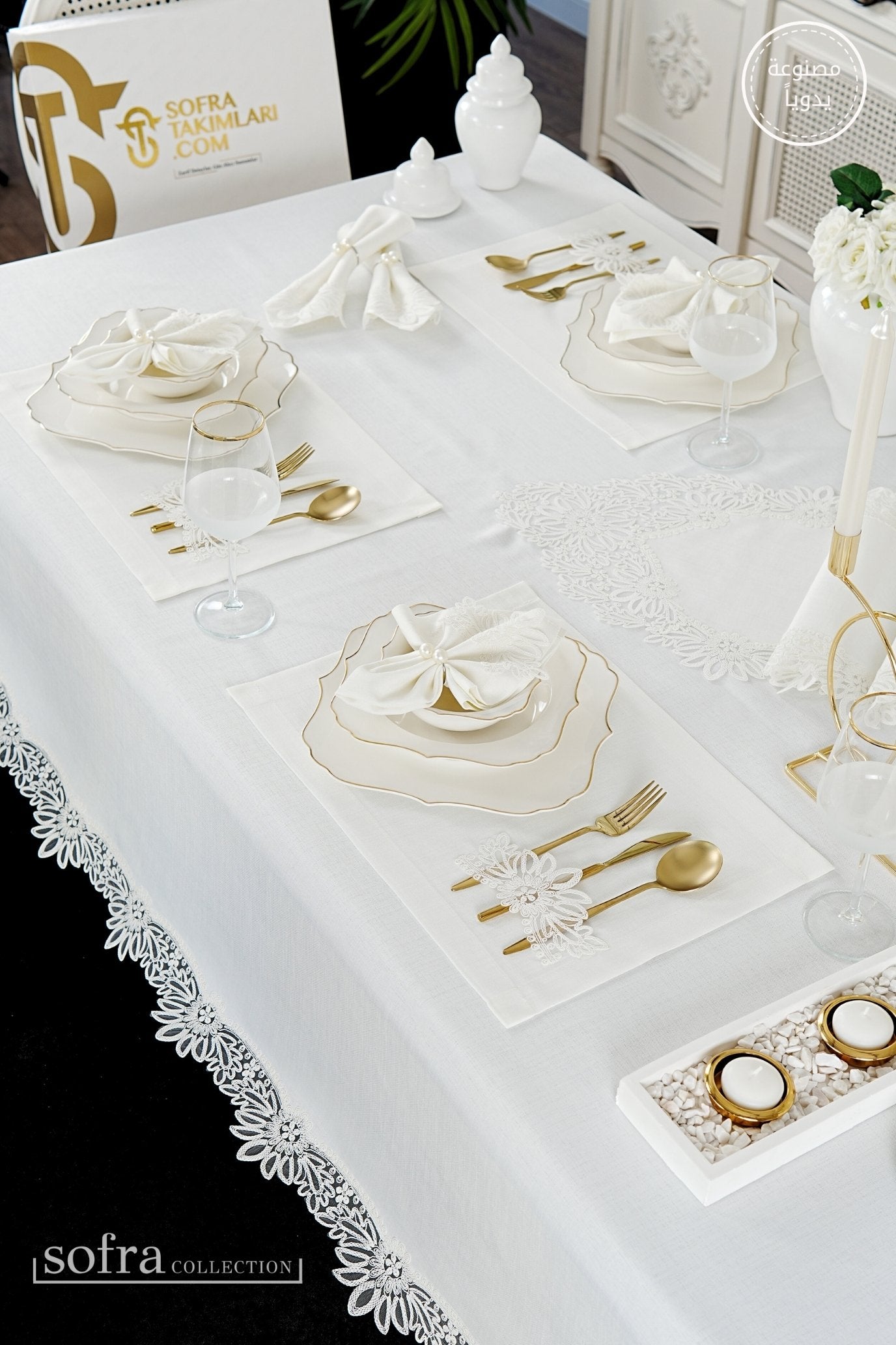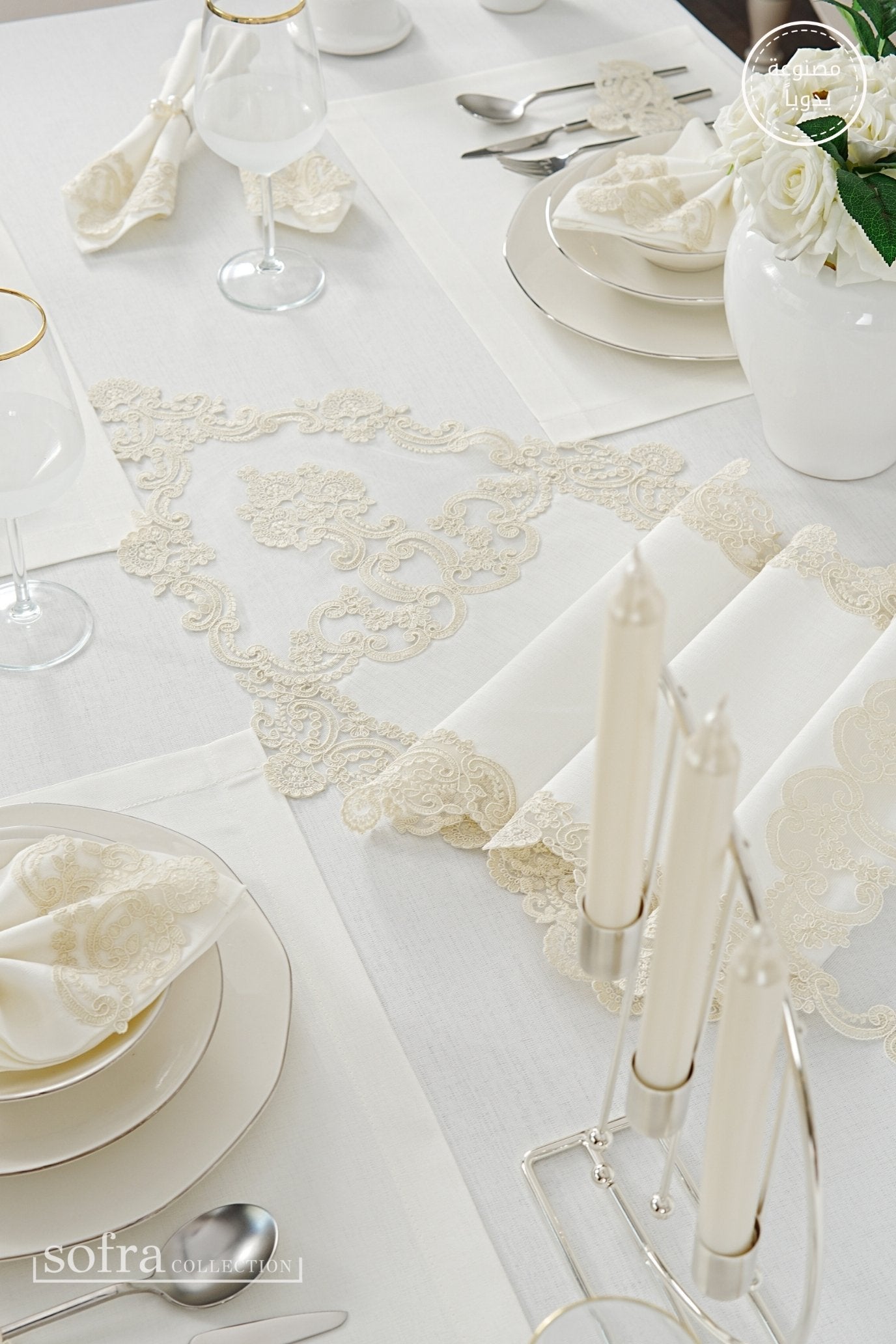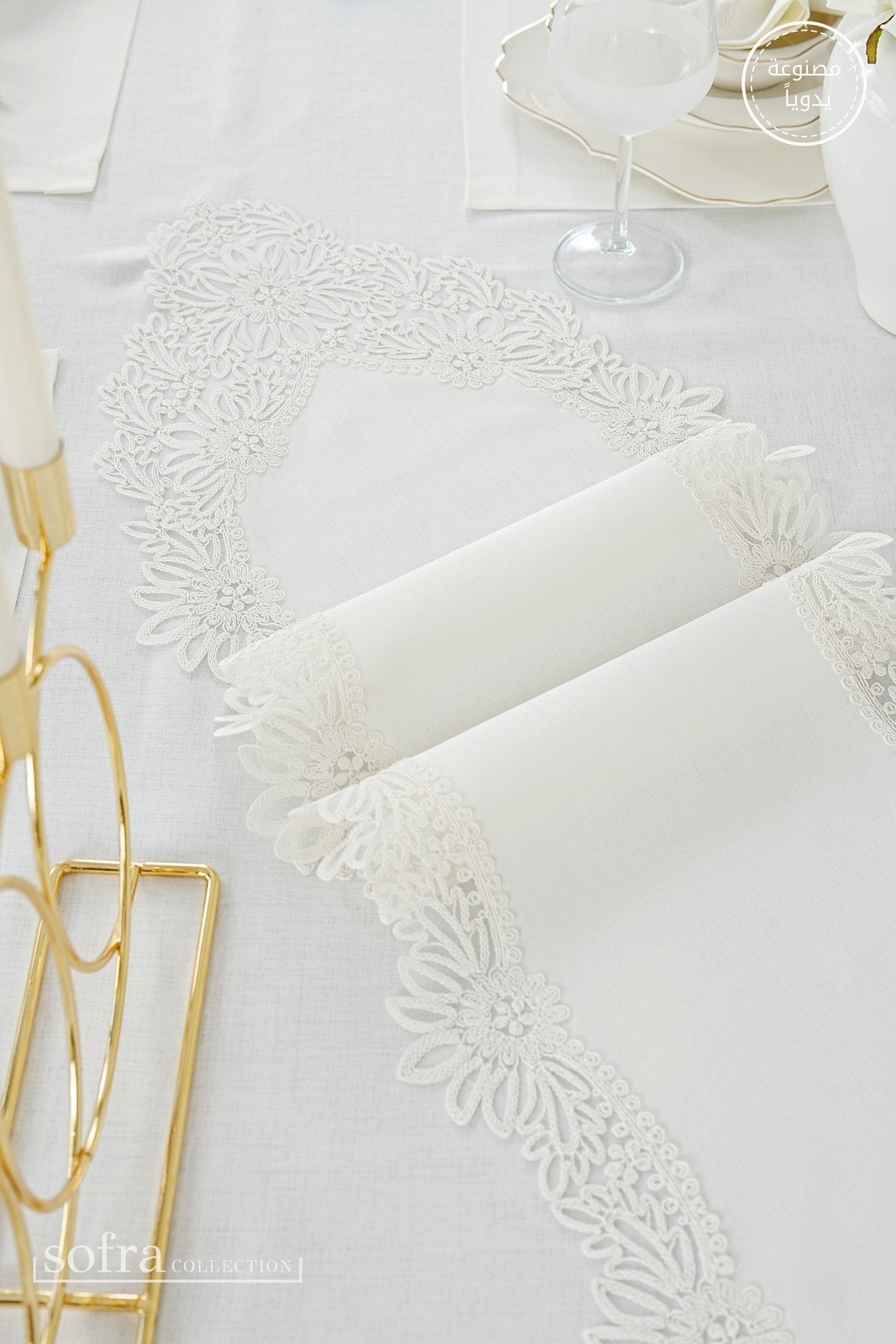 • رانر مزين بالدانتيل (قطعة واحدة) – يصمم ليتناسب مع مقاس الطاولة