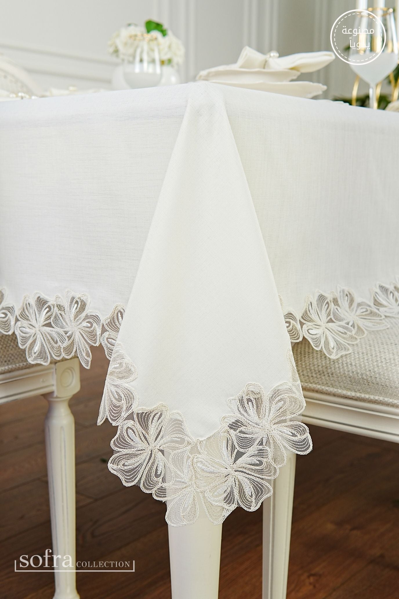 • مفرش طاولة مزين بالدانتيل (قطعة واحدة) – متوفر بمقاسات مختلفة