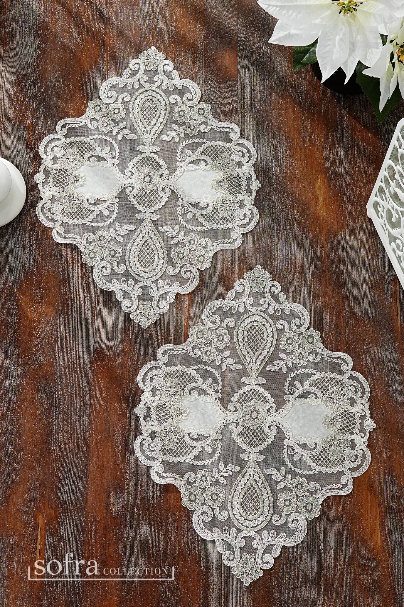 مفرشان للطاولات الجانبية: قطعتان – مقاس ٥٤ × ٥٧ سم