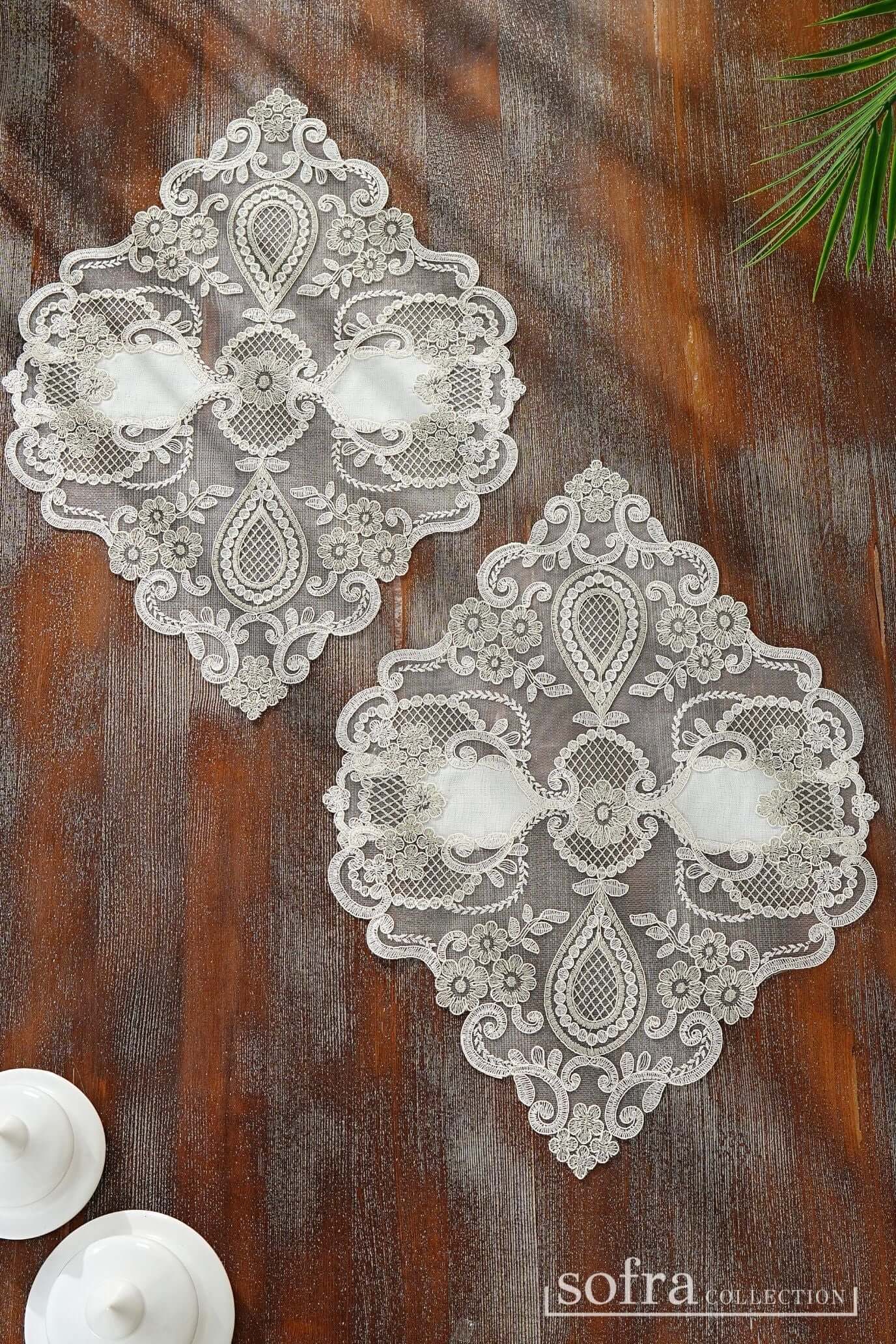 مفرشان للطاولات الجانبية : قطعتان – مقاس ٥٧ × ٥٧ سم