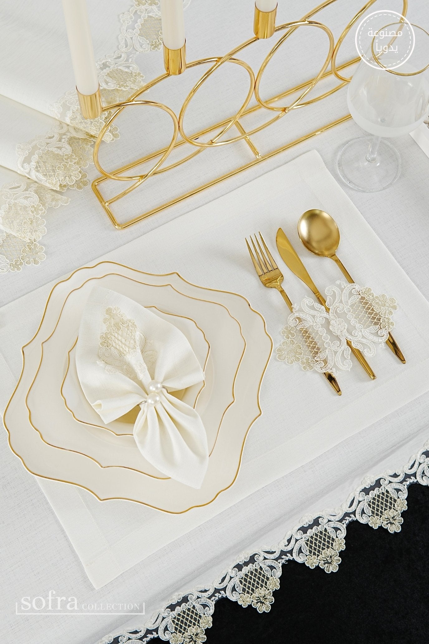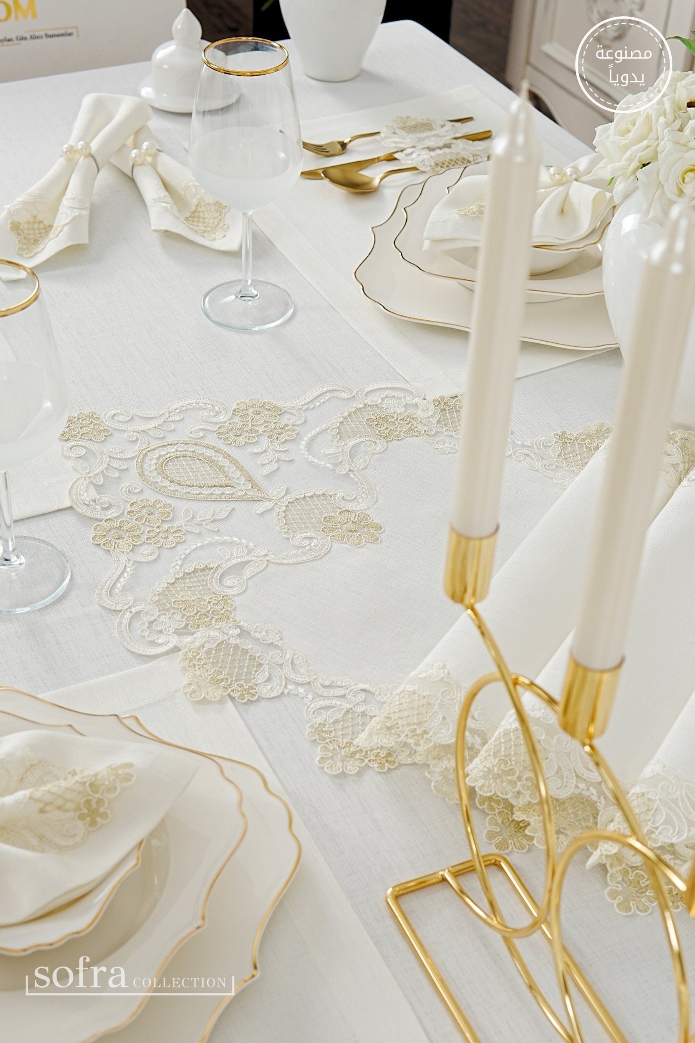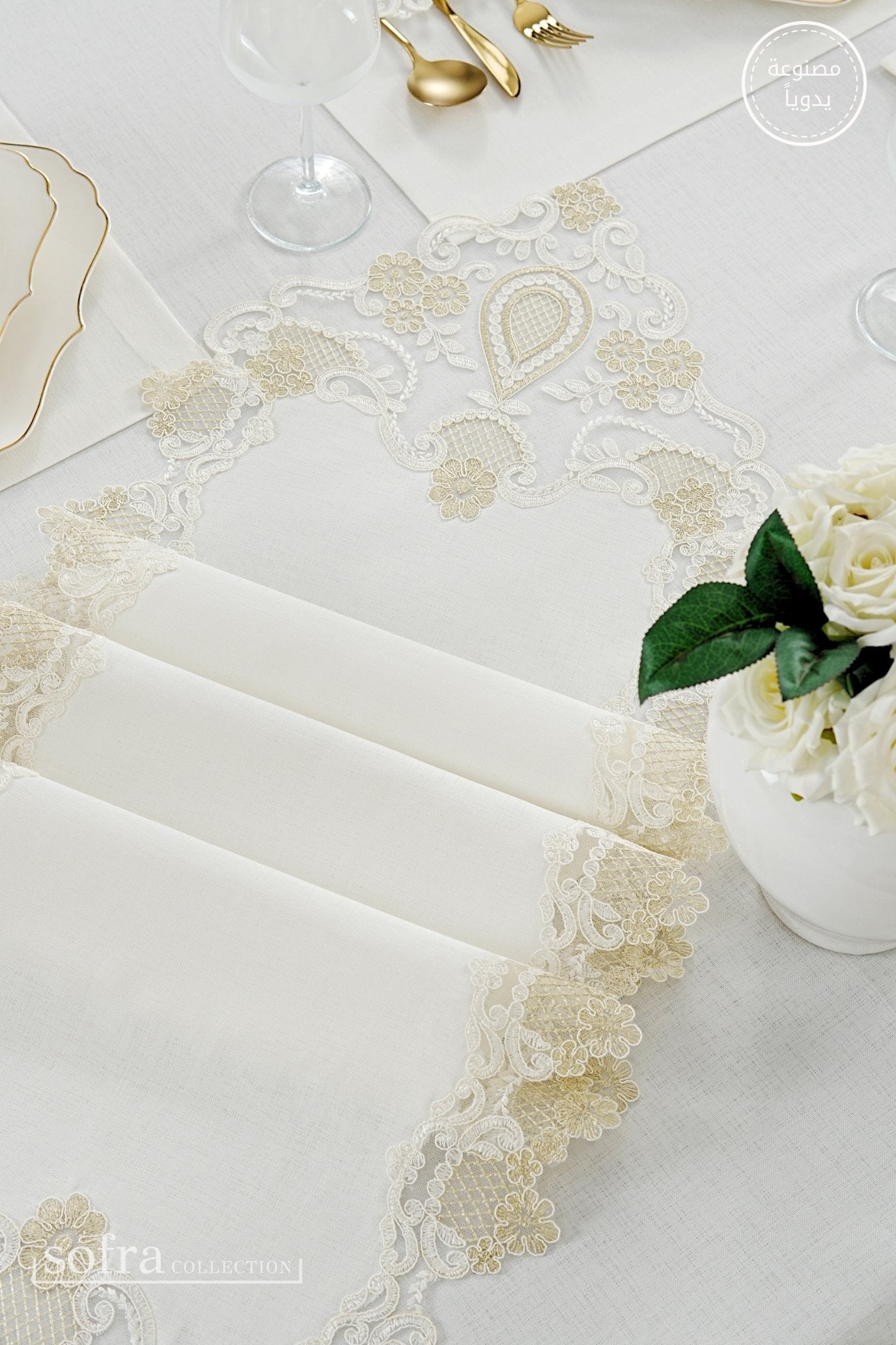 • رانر مزين بالدانتيل (قطعة واحدة) – يصمم ليتناسب مع مقاس الطاولة