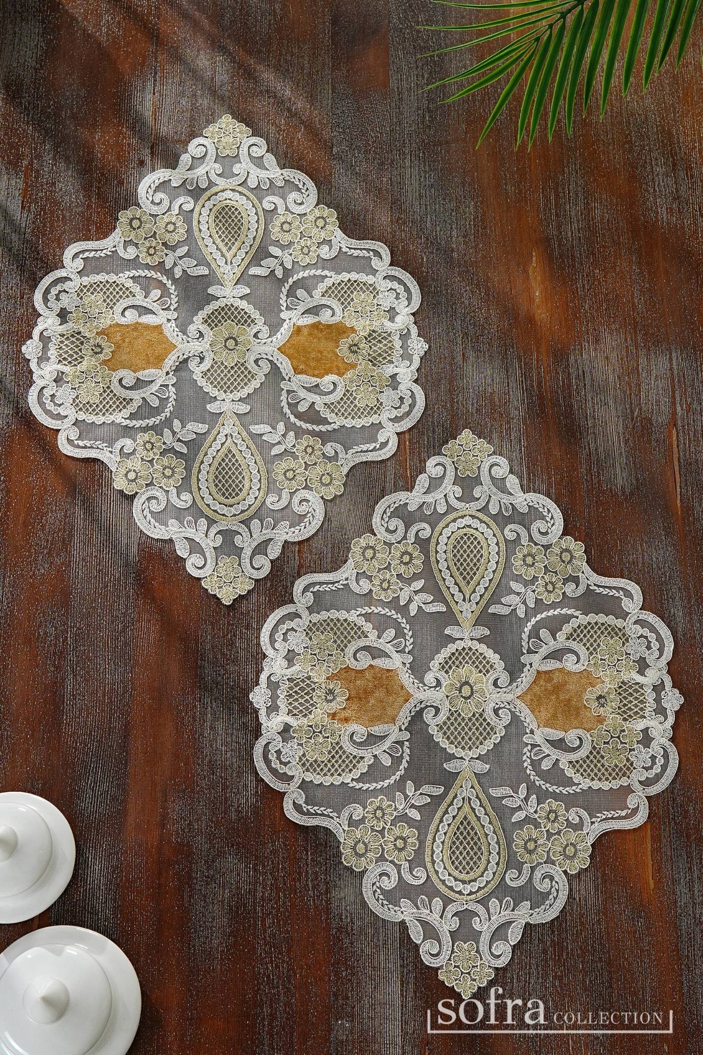 مفرشان للطاولات الجانبية : قطعتان – مقاس ٥٤ × ٥٧ سم