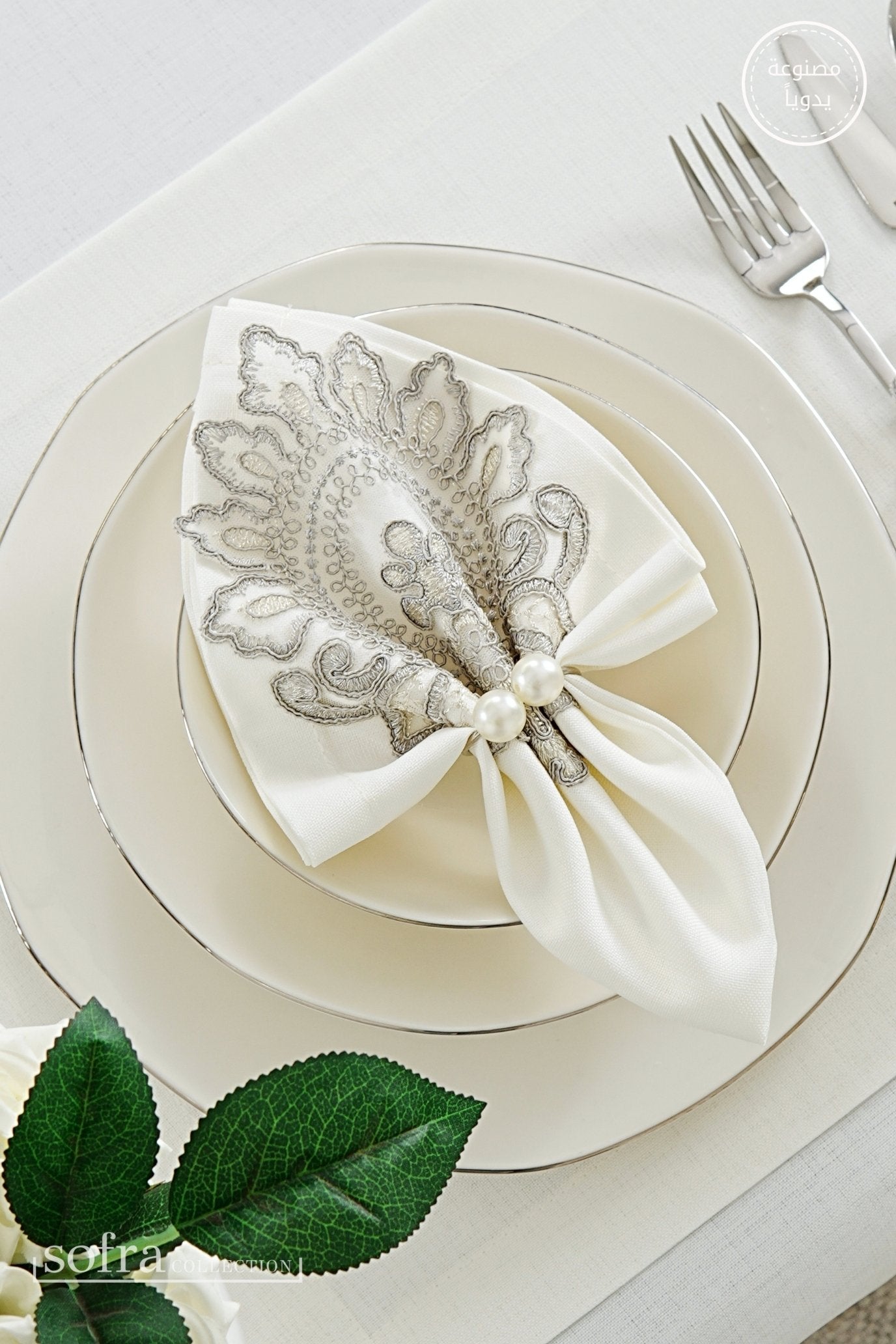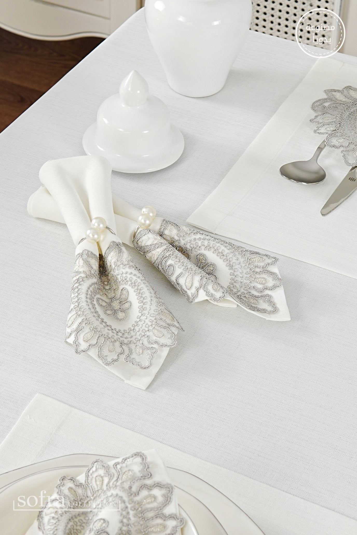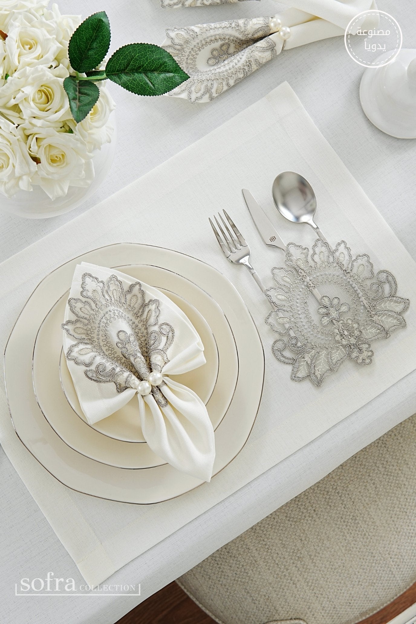 طقم مفارش سفرة فاخر يتكون من ٣٨ قطعة كاملة يكفى ١٢ شخص