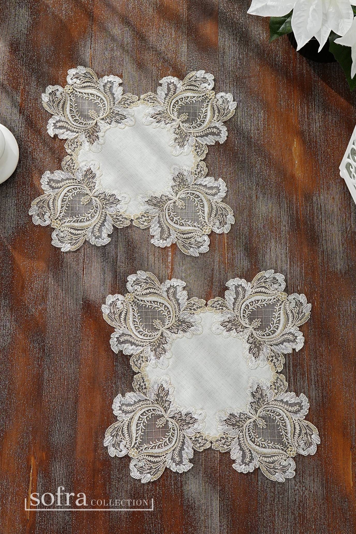 مفرشان للطاولات الجانبية: قطعتان – مقاس ٣٠ × ٣٠ سم