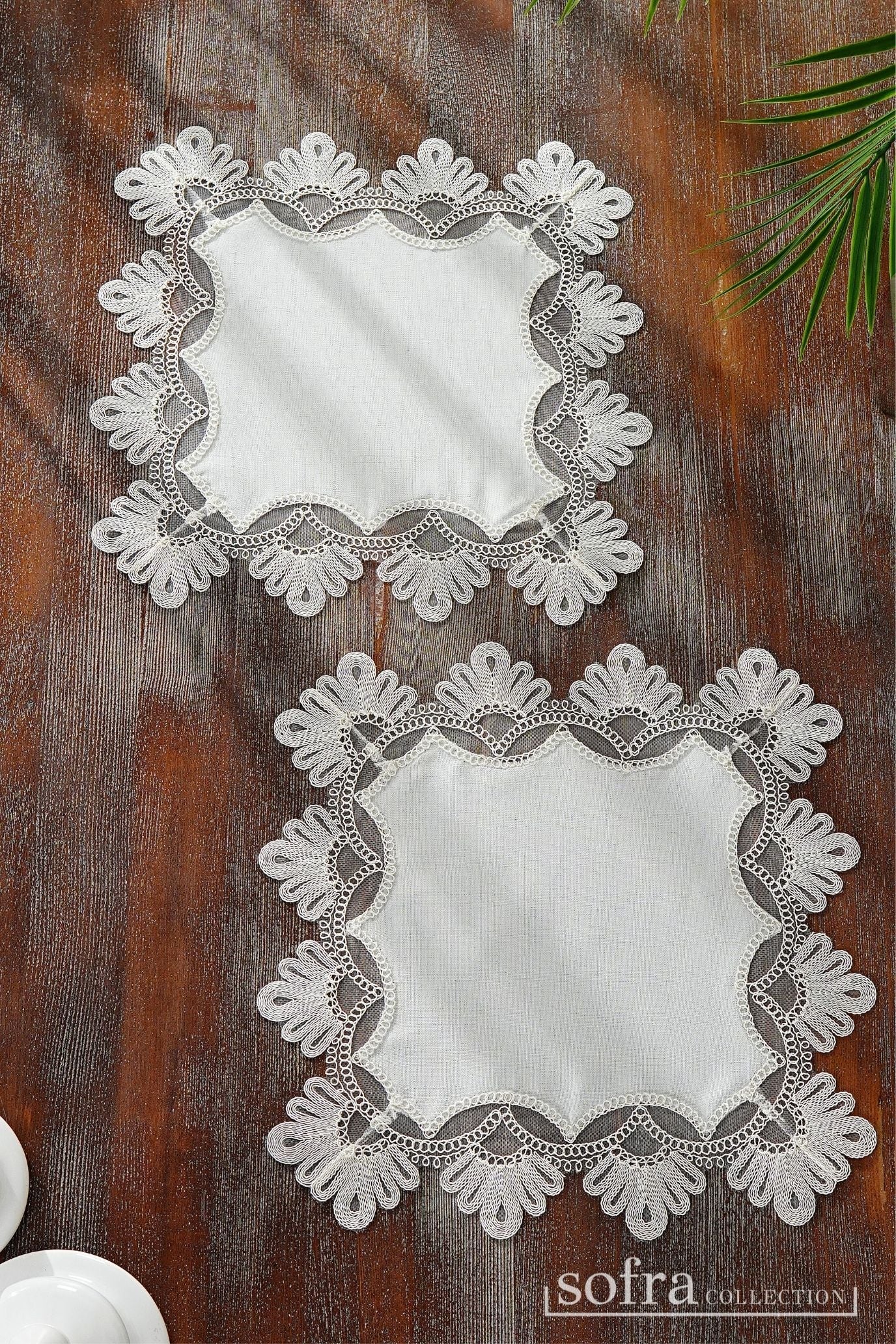 مفرشان للطاولات الجانبية : قطعتان – مقاس ٣٣ × ٣٣ سم