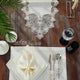 طقم مفارش سفرة مزين بدانتيل اوف وايت - موديل صوفيا – شامل المناديل - ٣٧ قطعة – ١٢ شخص - قماش كتان مقاوم للبقع