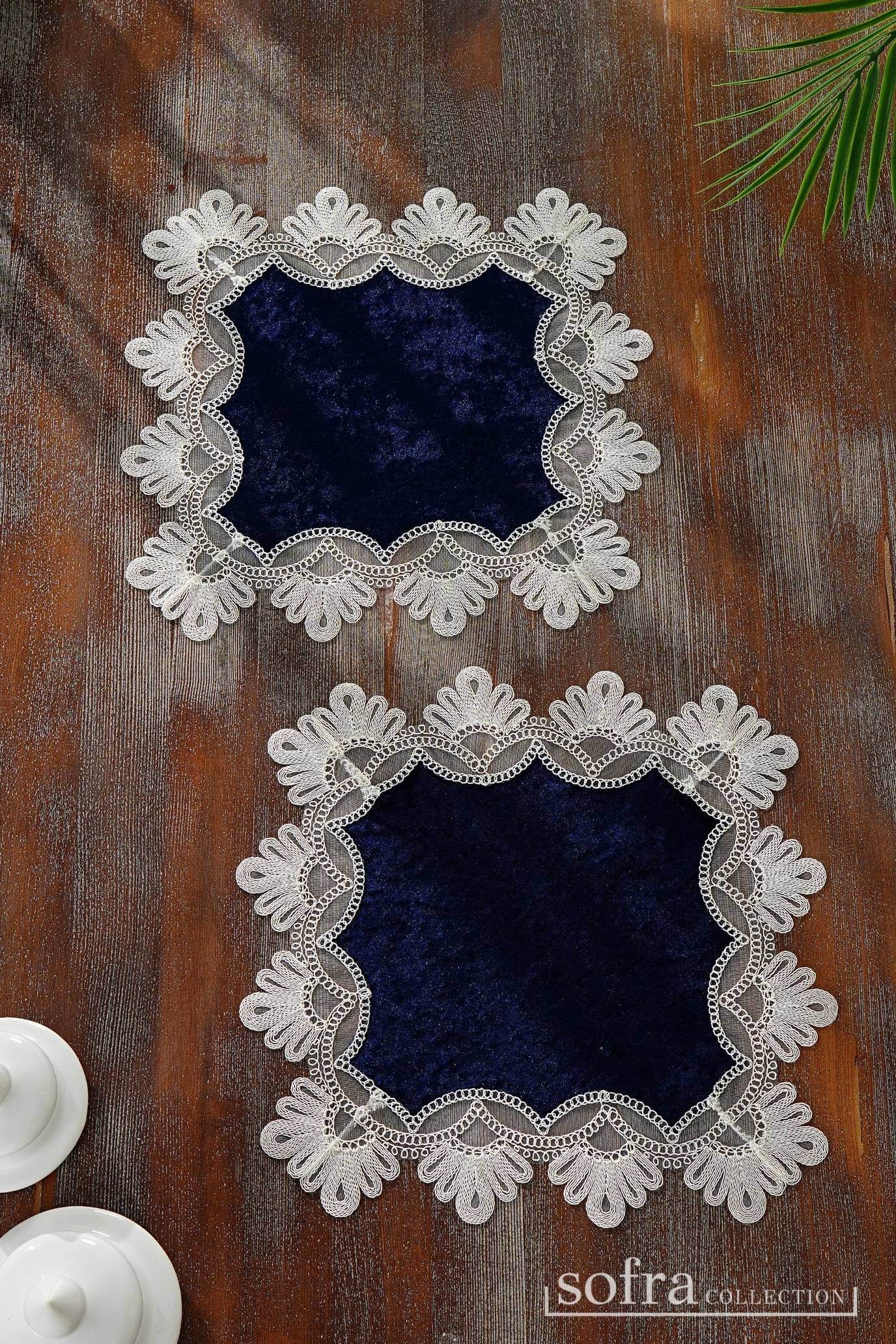 مفرشان للطاولات الجانبية : قطعتان– مقاس ٣٣ × ٣٣ سم