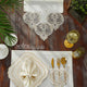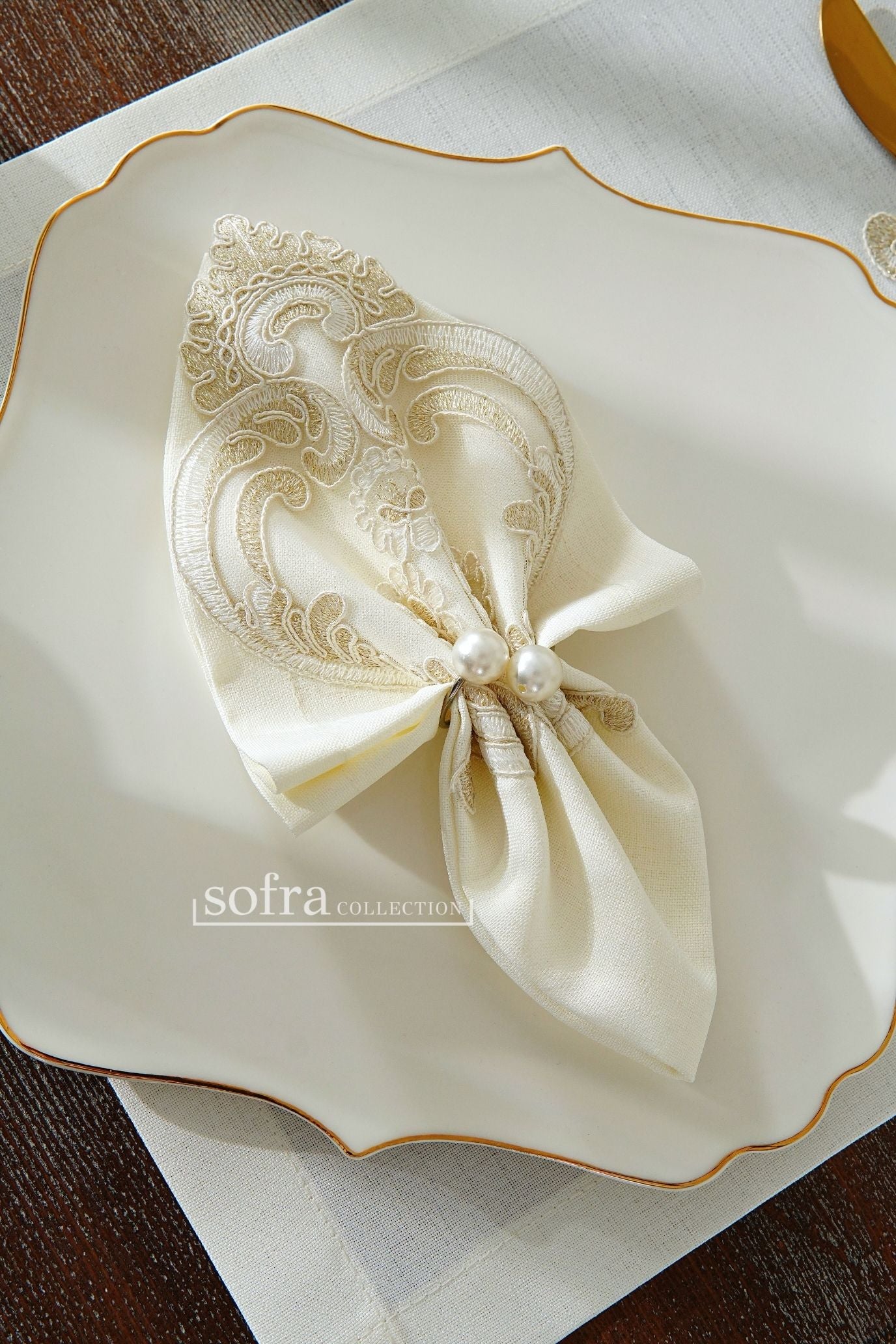 طقم مفارش سفرة مزين بدانتيل ذهبى - موديل سويتى – شامل المناديل - ٣٧ قطعة – ١٢ شخص - قماش كتان مقاوم للبقع