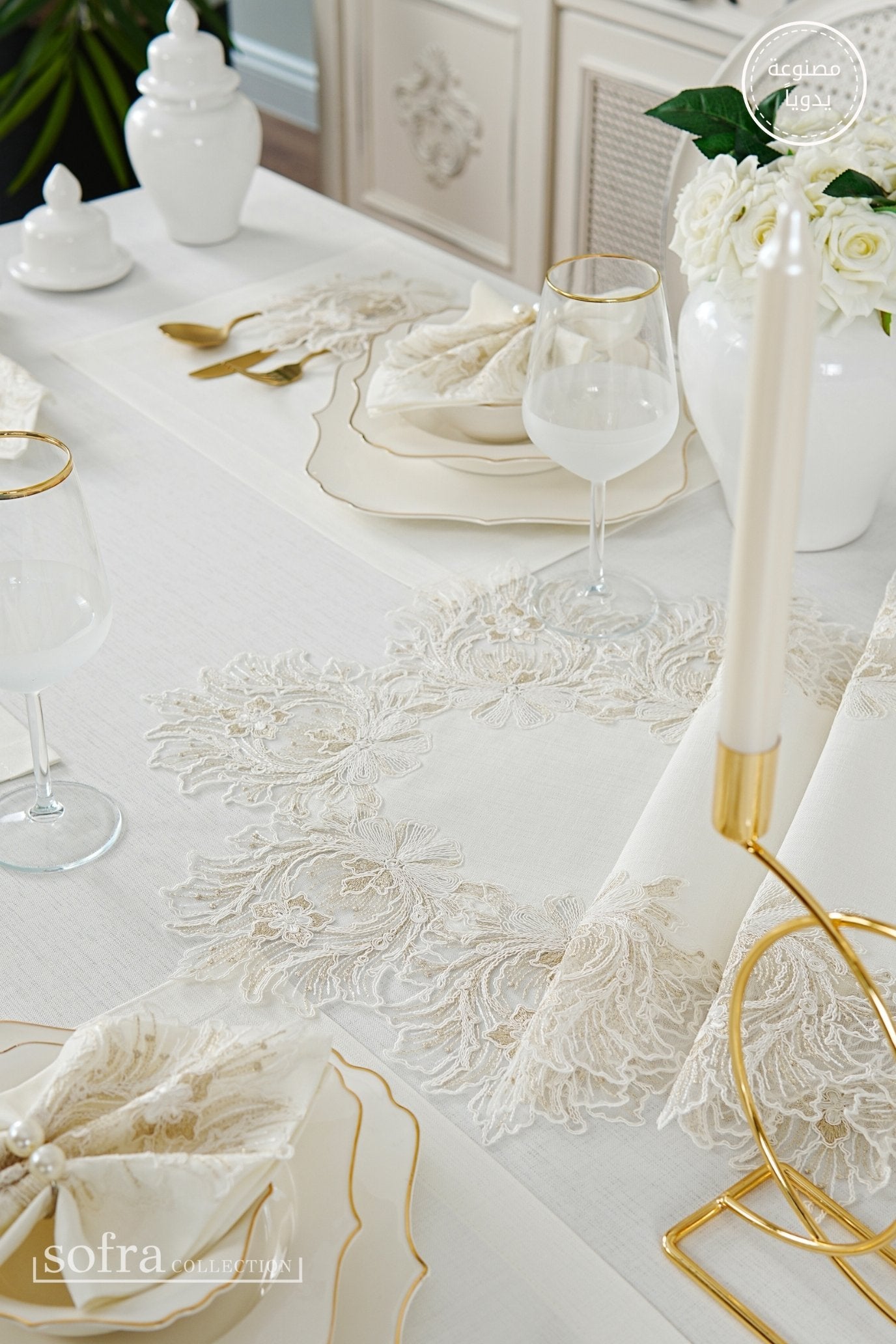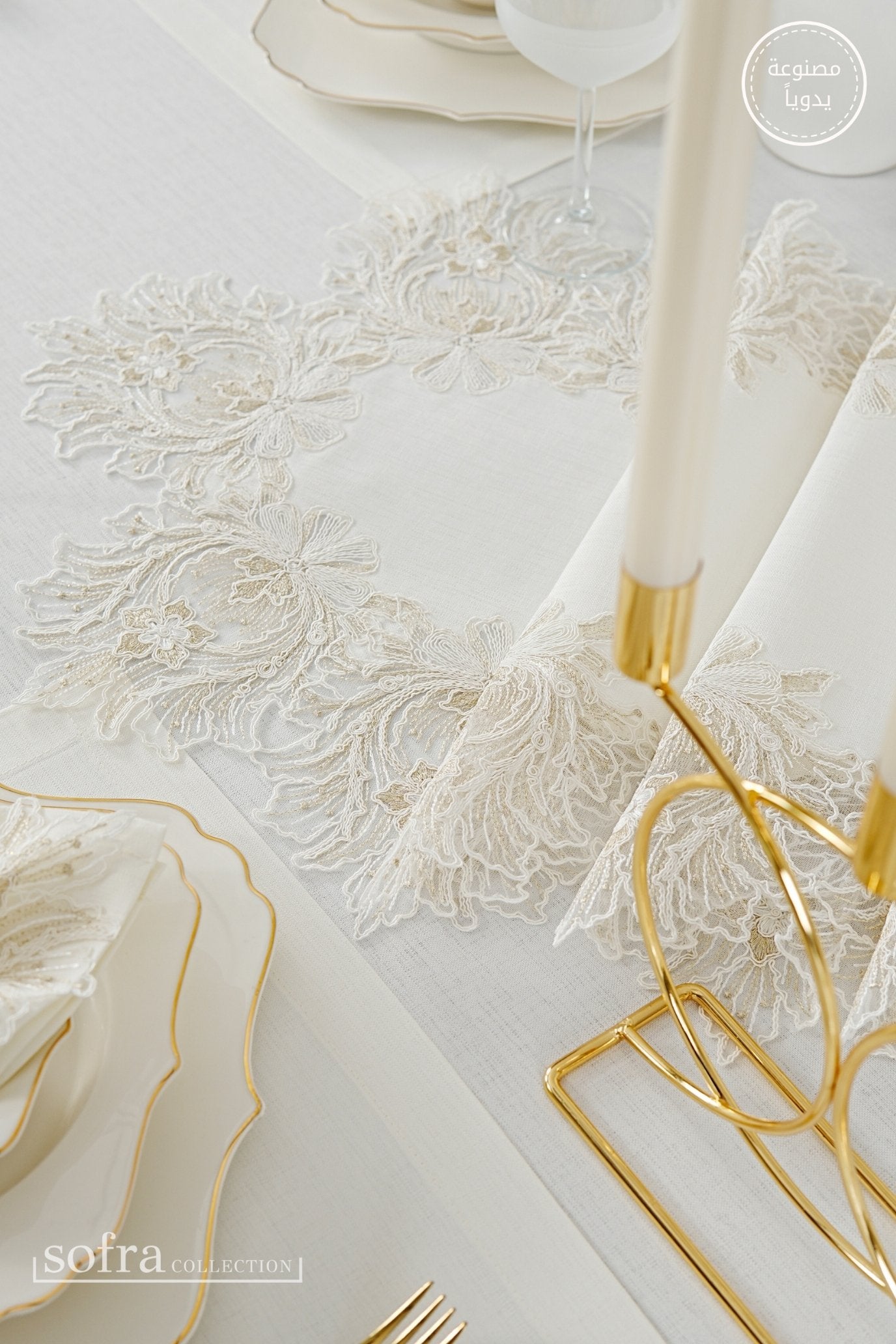 • رانر مزين بالدانتيل (قطعة واحدة) – يصمم ليتناسب مع مقاس الطاولة