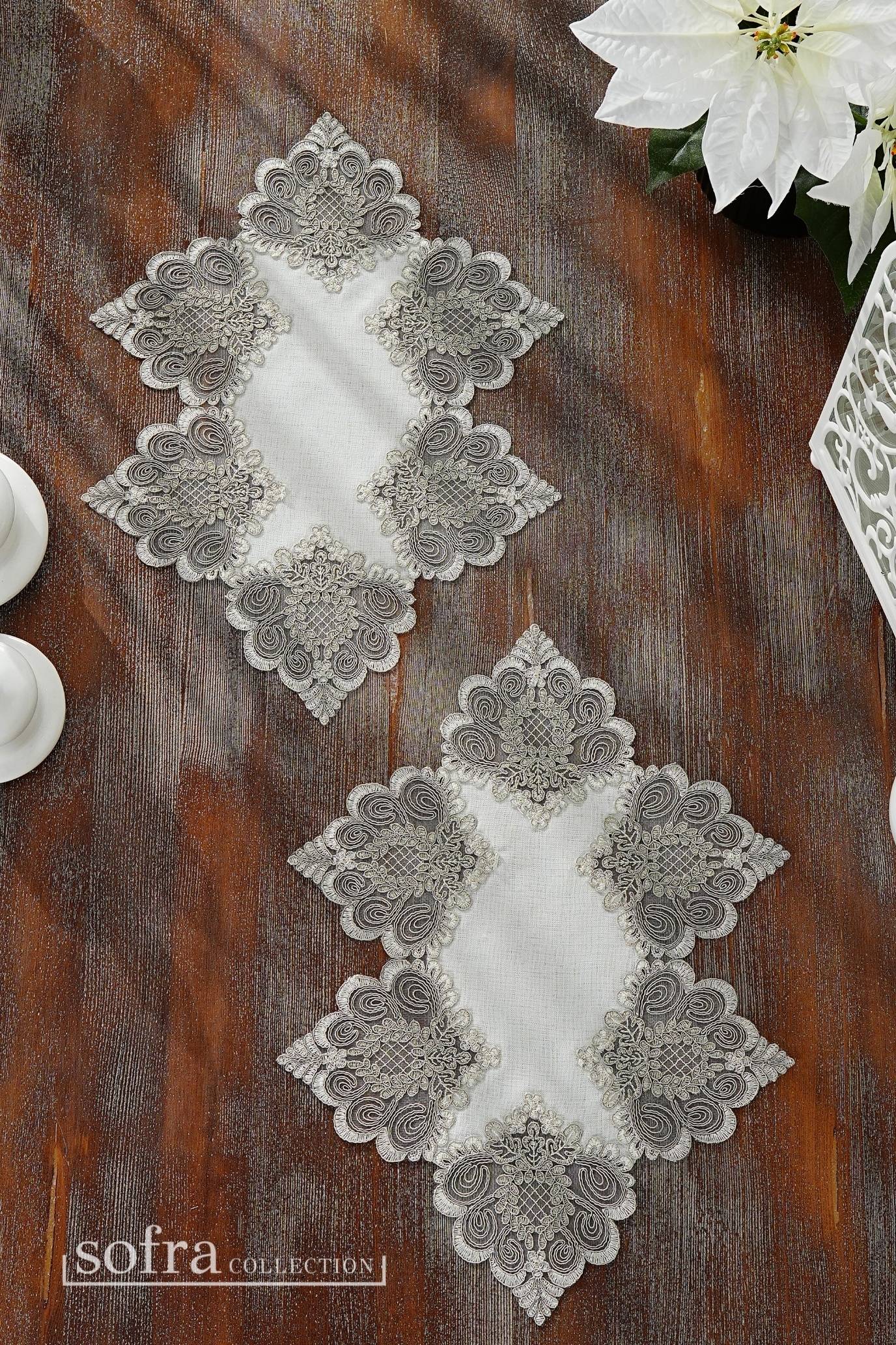 مفرشان للطاولات الجانبية: قطعتان – مقاس ٣٣ × ٤٦ سم