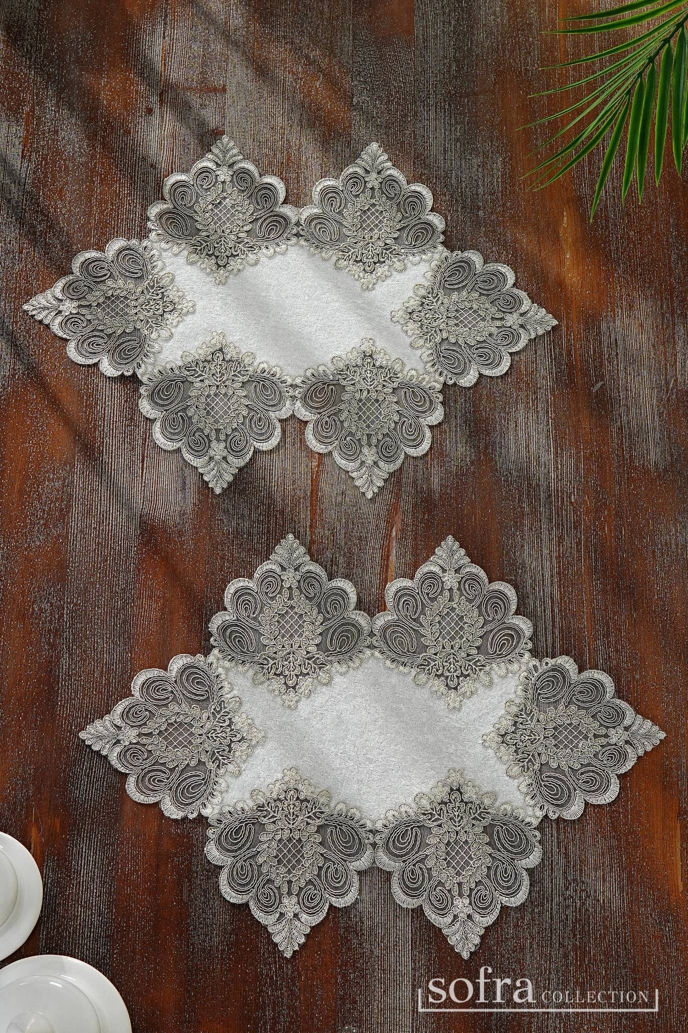 مفرشان للطاولات الجانبية : قطعتان – مقاس ٣٣ × ٤٦ سم