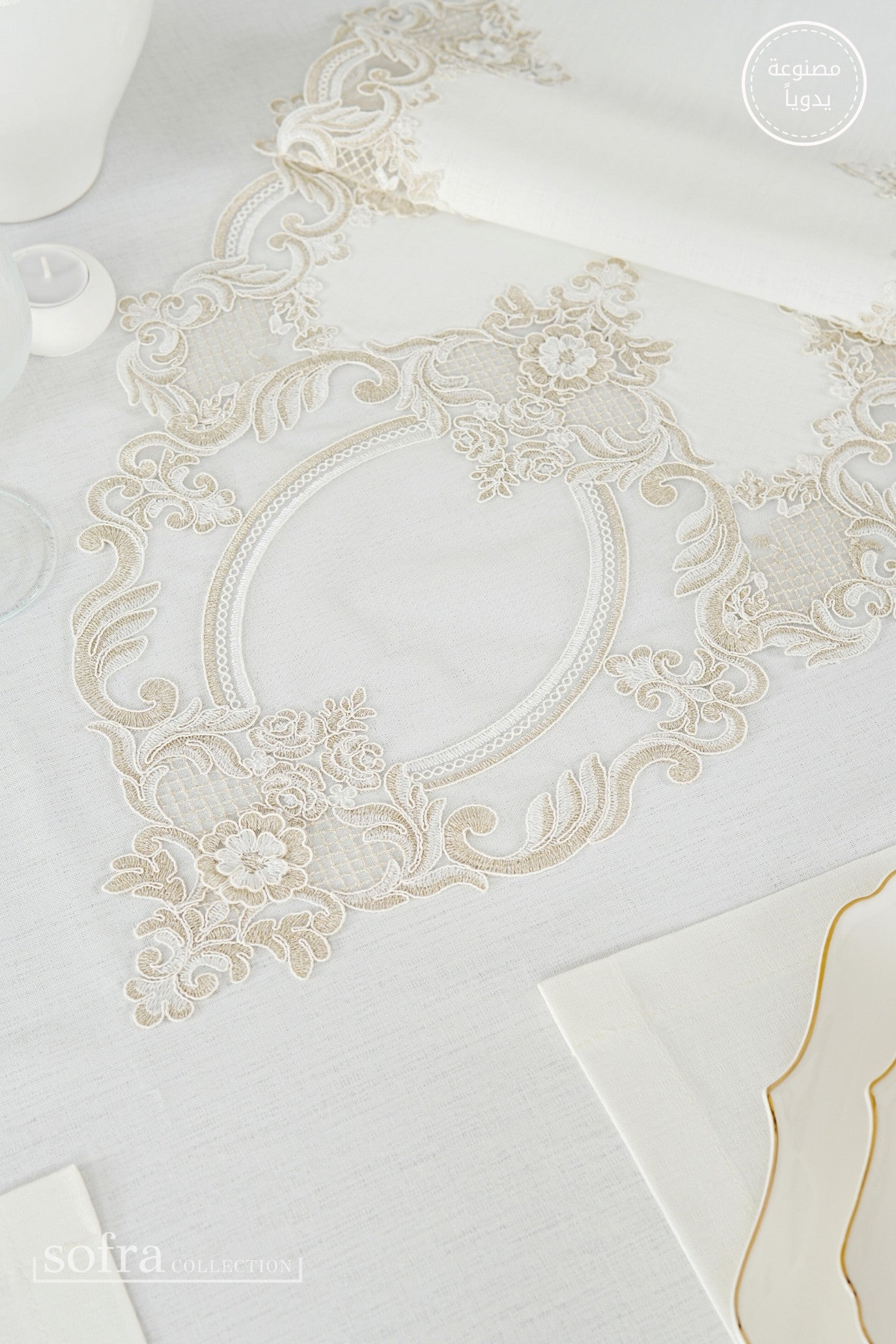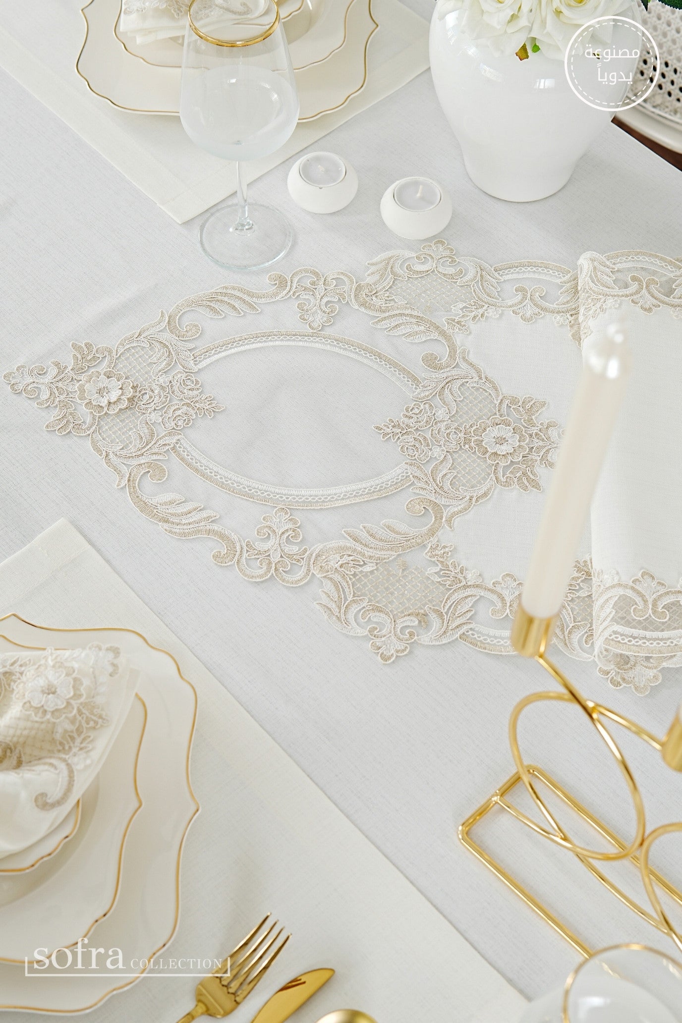 • رانر مزين بالدانتيل (قطعة واحدة) – يصمم ليتناسب مع مقاس الطاولة