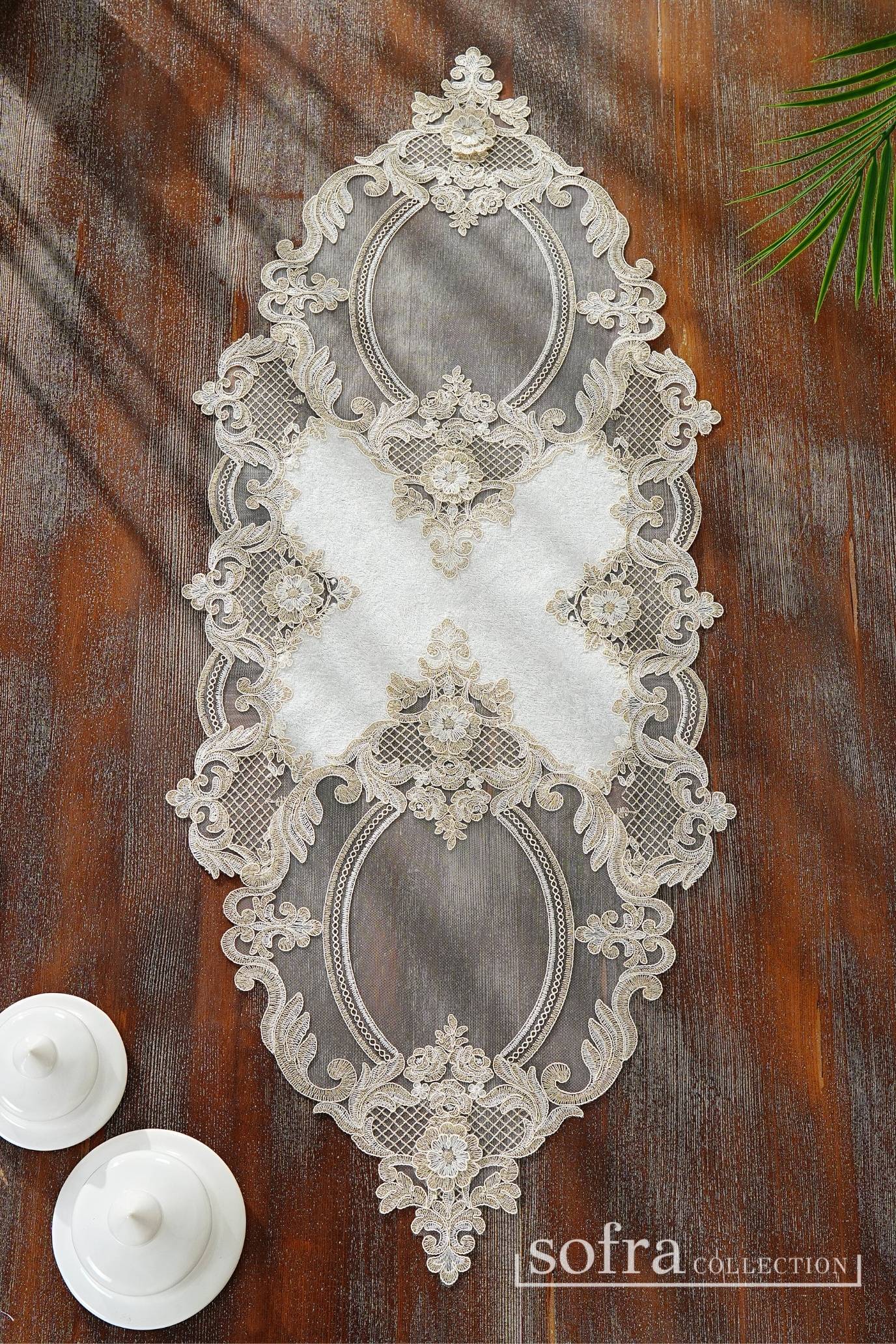 رانر مزين بالدانتيل : قطعة واحدة - مقاس ٦٠ × ١٥٢ سم
