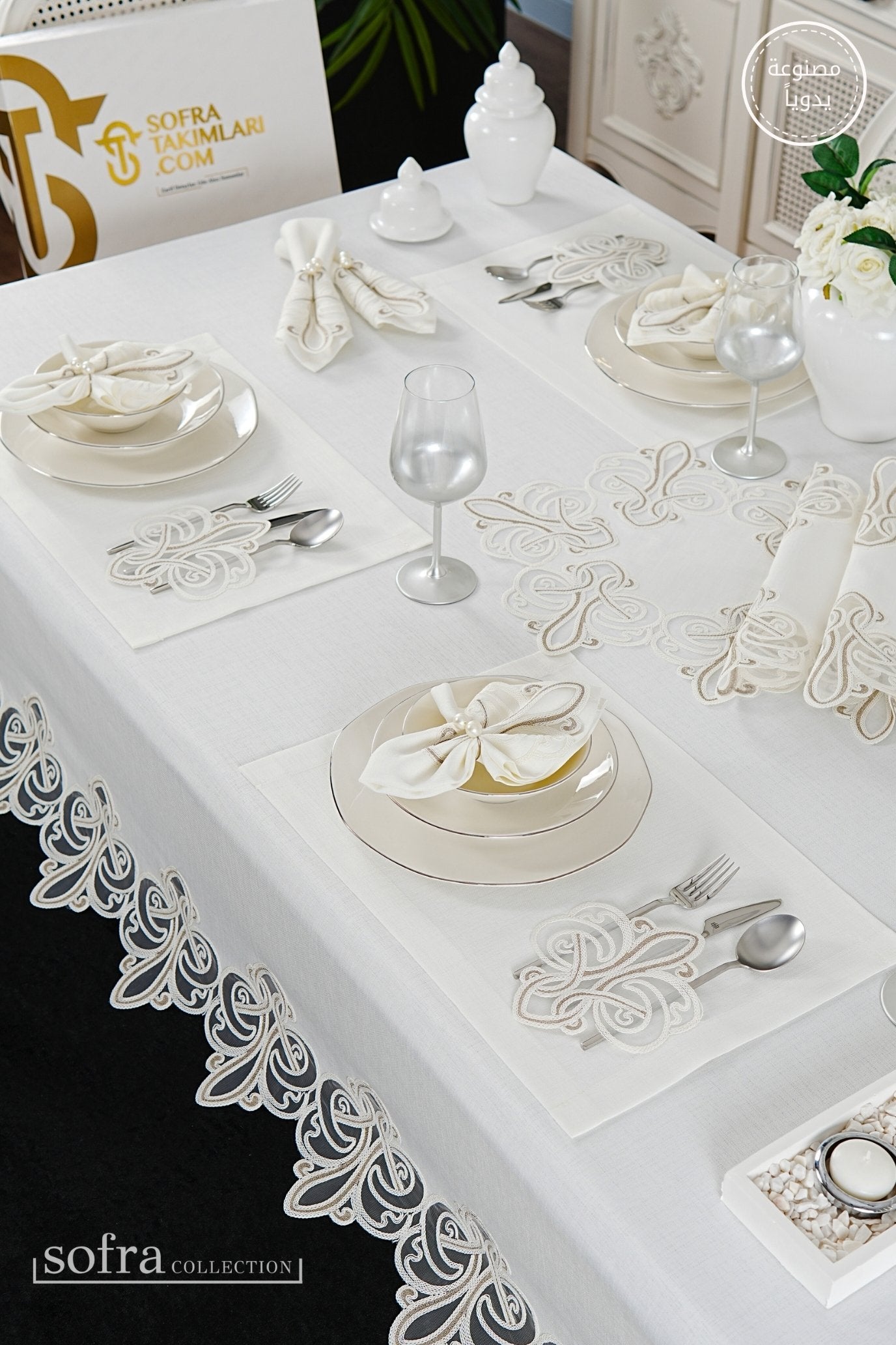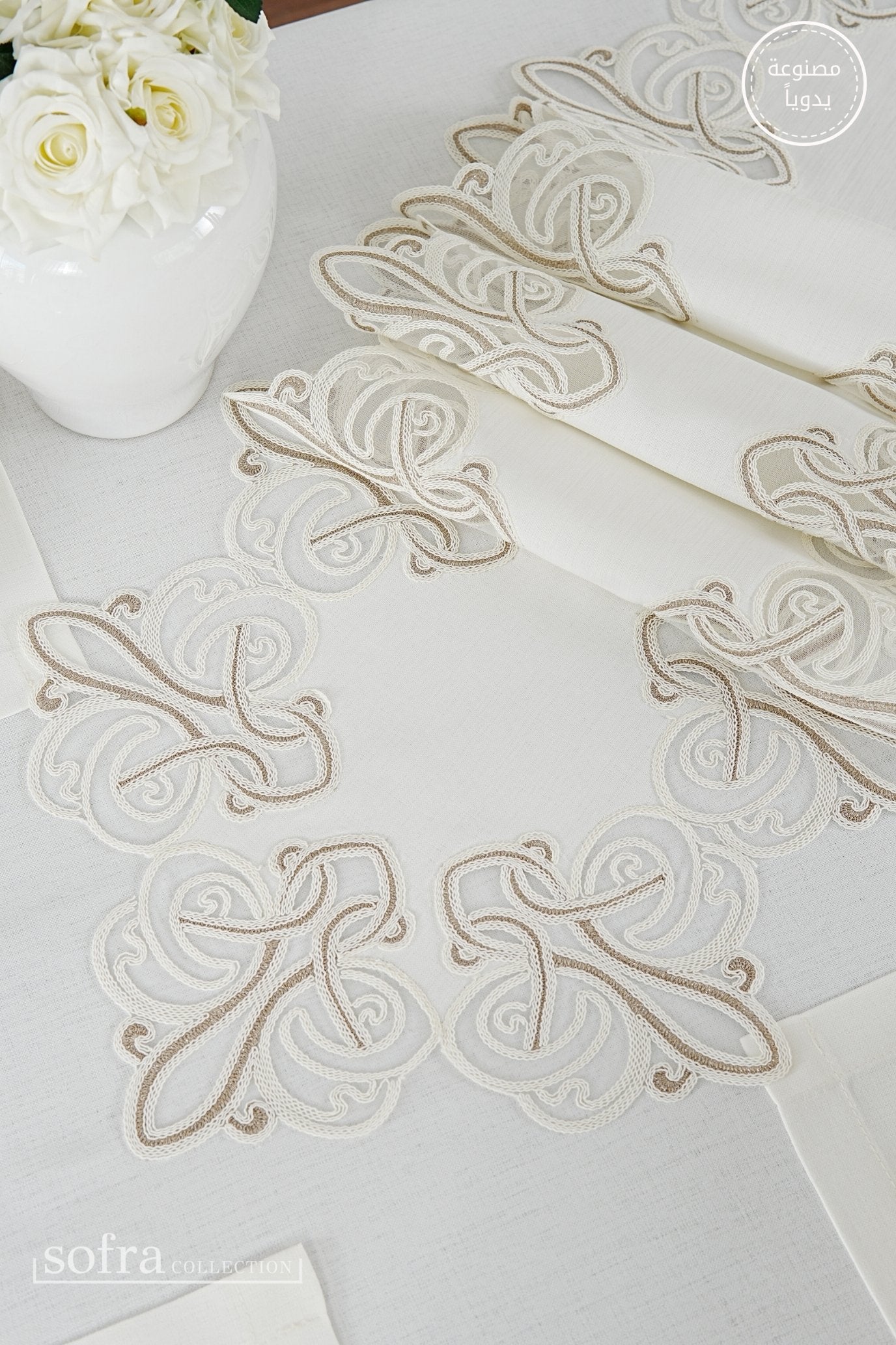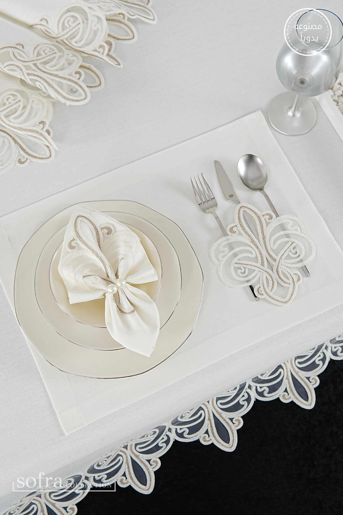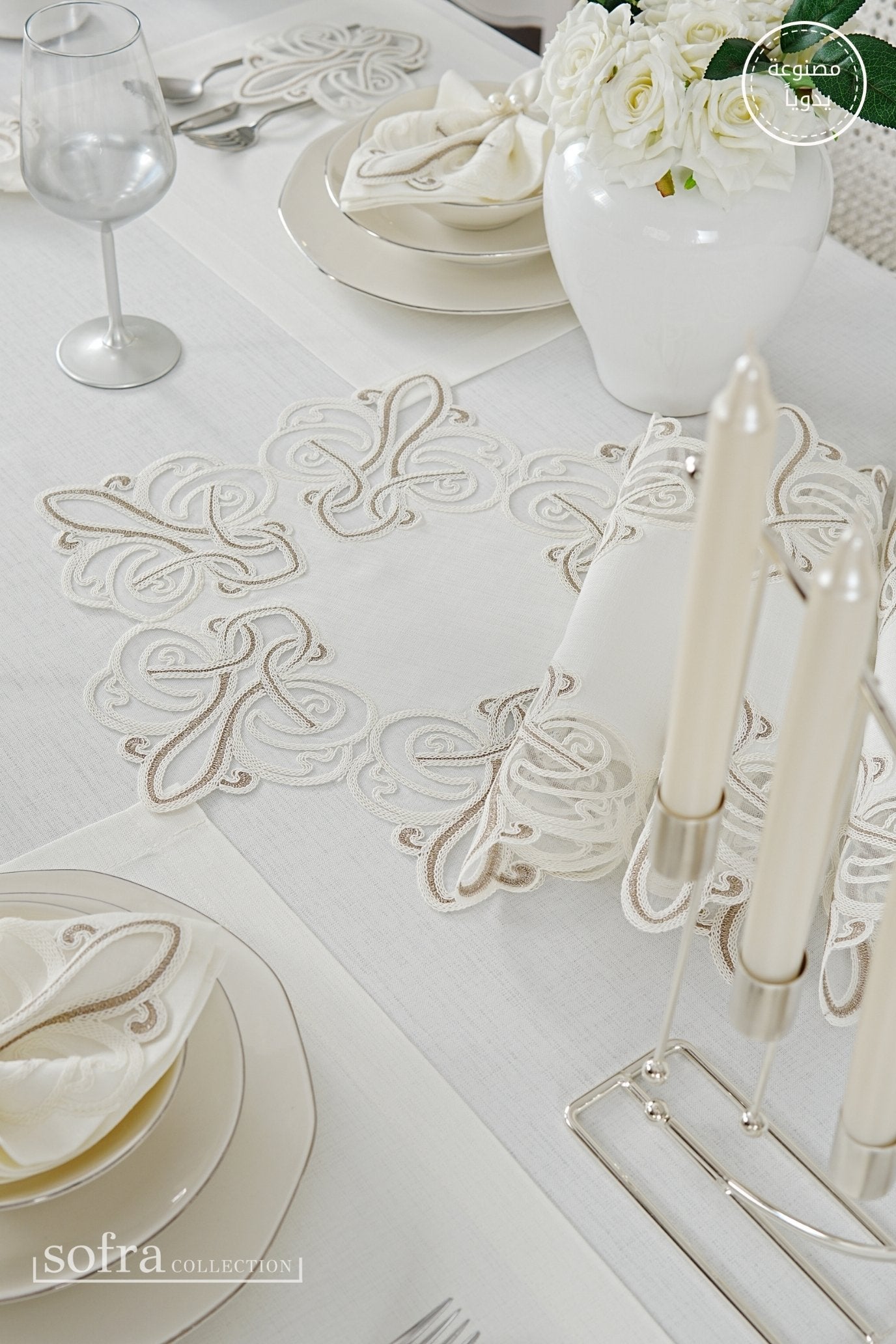 • رانر مزين بالدانتيل (قطعة واحدة) – يصمم ليتناسب مع مقاس الطاولة