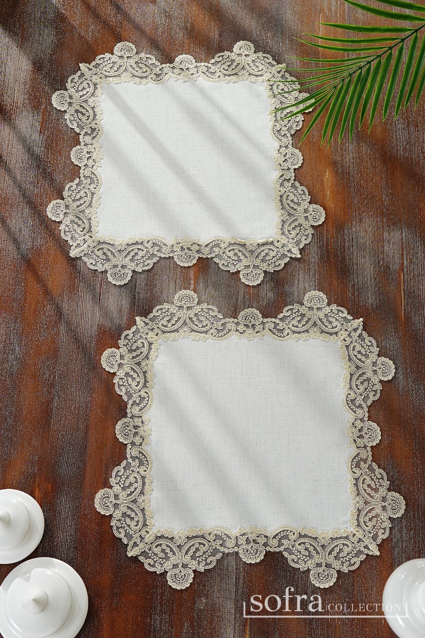 مفرشان للطاولات الجانبية : قطعتان – مقاس ٤٤ × ٤٤ سم