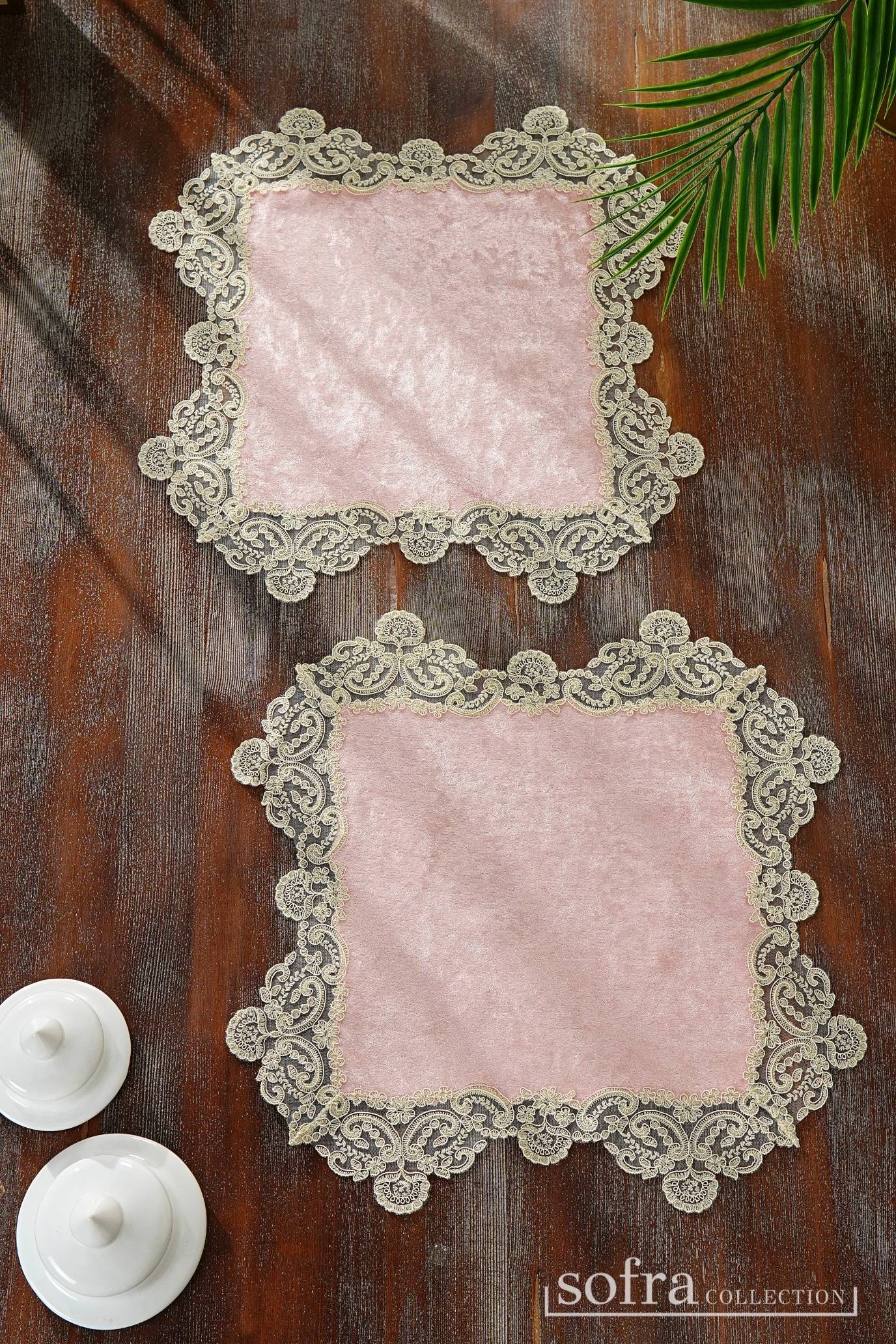 مفرشان للطاولات الجانبية : قطعتان – مقاس ٤٤ × ٤٤ سم