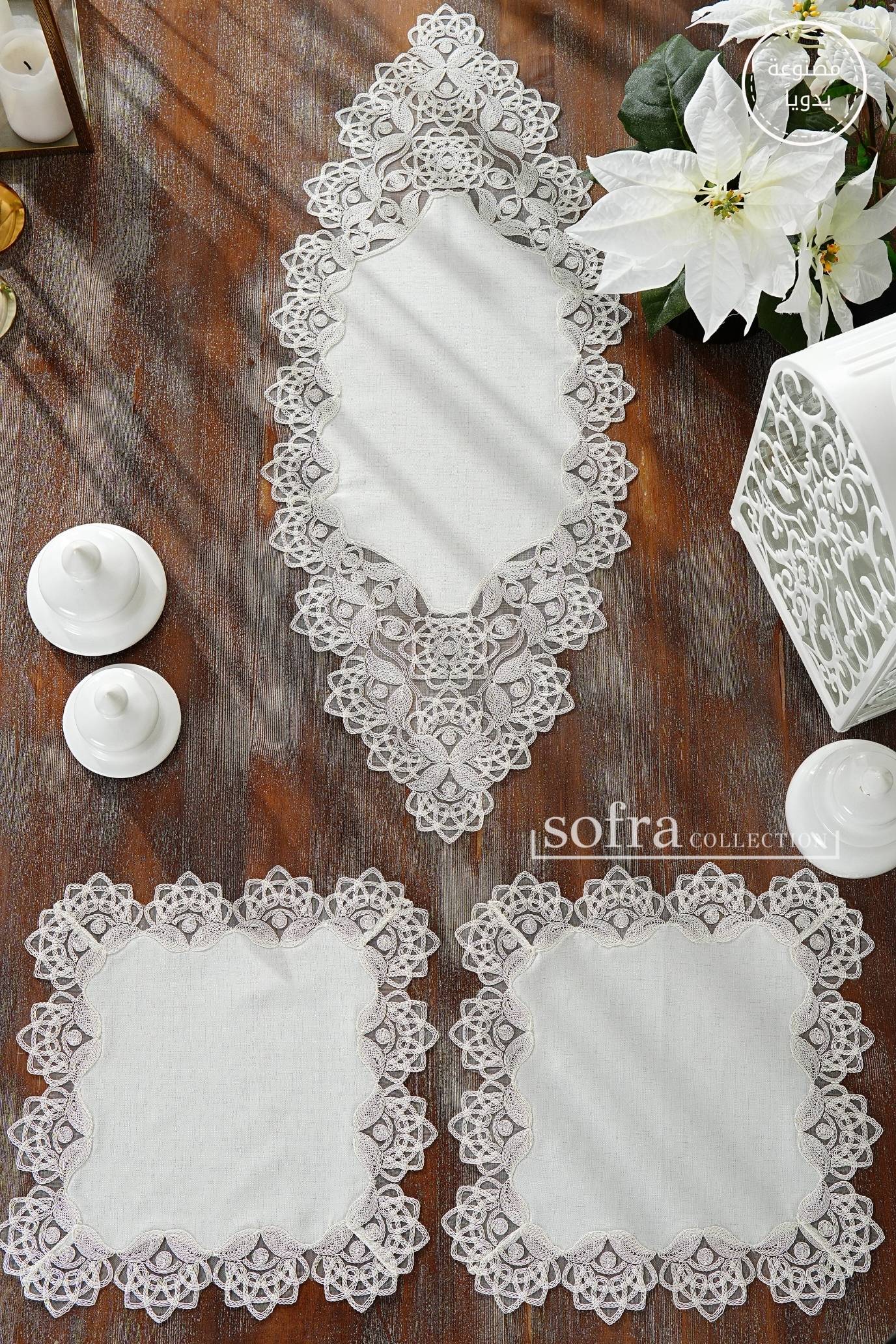 طقم مفارش ٣ قطع قماش كتان مزين بالدانتيل