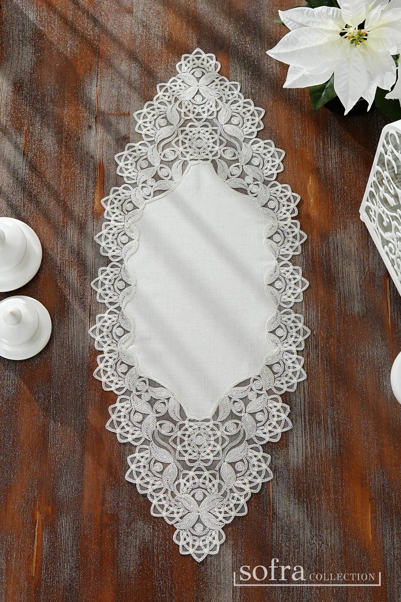 مفرش مزين بالدانتيل :قطعة واحدة - مقاس ٣٤ × ٨٣ سم