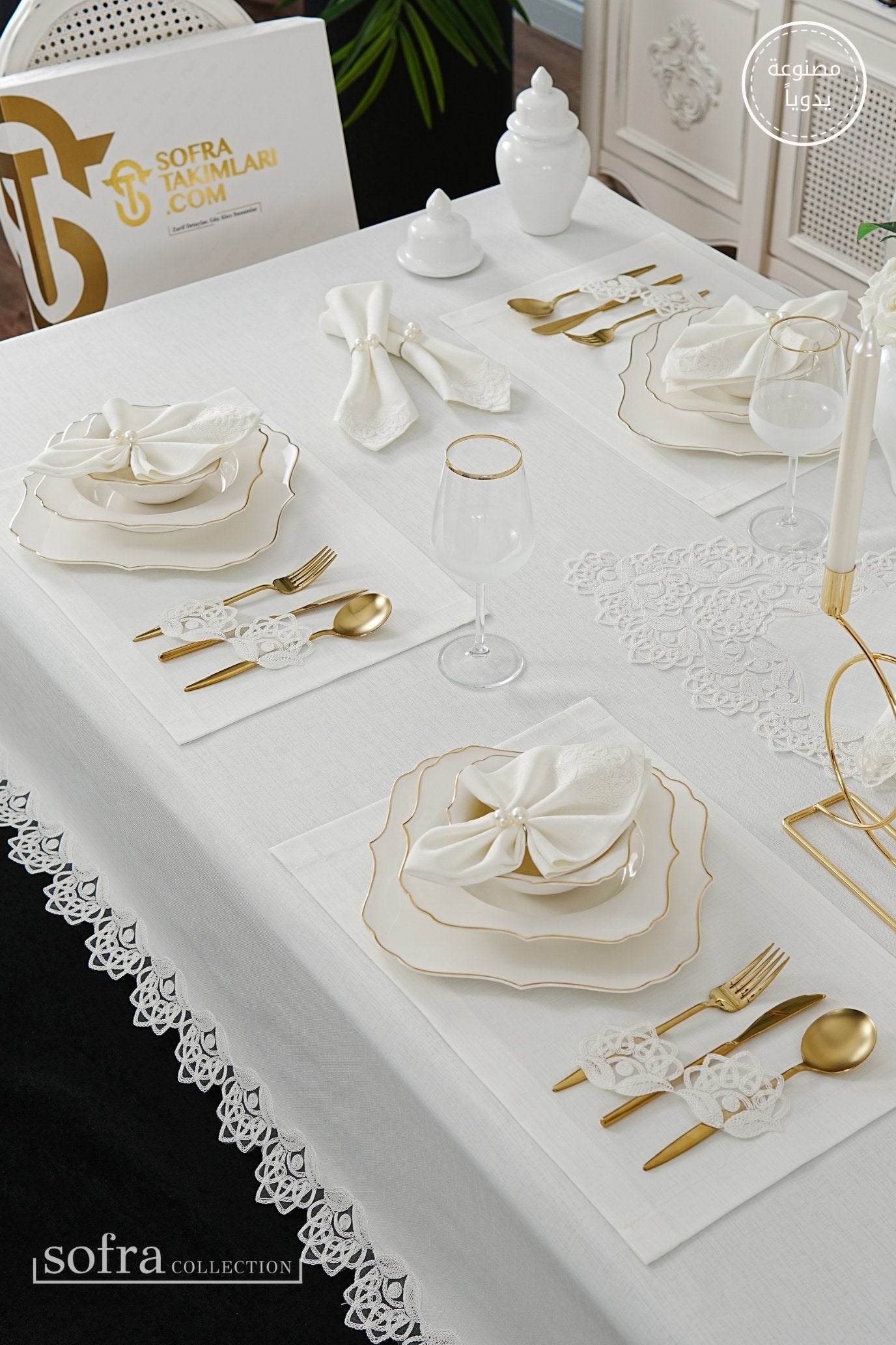 طقم مفارش سفرة فاخر يتكون من ٣٨ قطعة كاملة يكفى ١٢ شخص