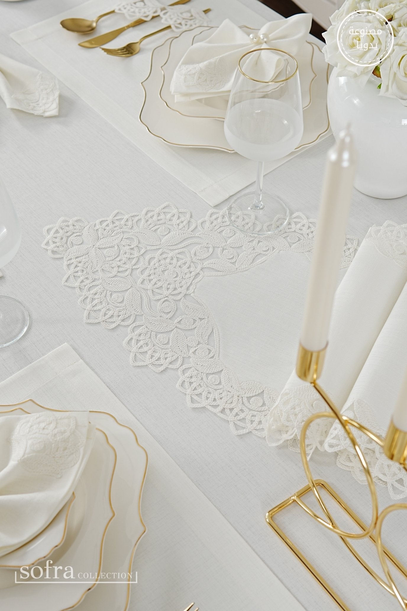 • رانر مزين بالدانتيل (قطعة واحدة) – يصمم ليتناسب مع مقاس الطاولة